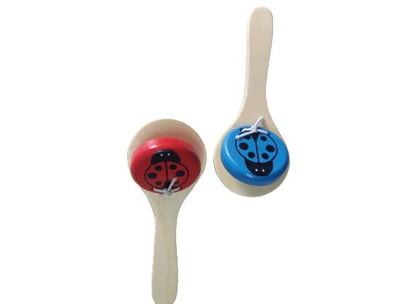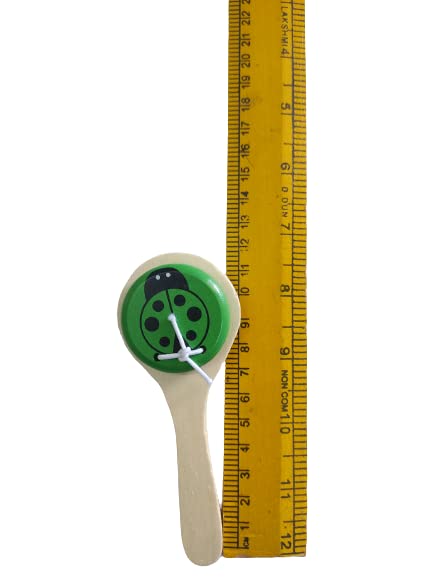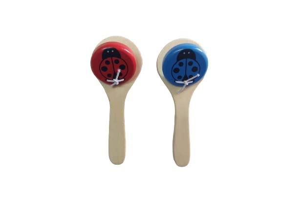 Baby Wooden Clapper Handle Clapping Rattle Pack of 2 Multicolor.Various instruments provide a wide range of sounds will help improve your child's motor skills hand-eye coordination rhythm and color recognition. Non-toxic child-safe high-quality wood handmade with a smooth and safe finish. Age Group: 0 to 3 Years.As children manipulate the wooden toys you donât have to worry much about their safety because wooden toys are designed to be safe. Most wooden toys wonât break easily which means children wonât be exposed to sharp edges or small pieces that have broken off of the toy. Theyâre also generally non-toxic and made from natural materials which means children can manipulate them by chewing on them or sucking on them. You donât have to worry about polluting your home with unknown chemicals or worry about what your child could possibly be eating.