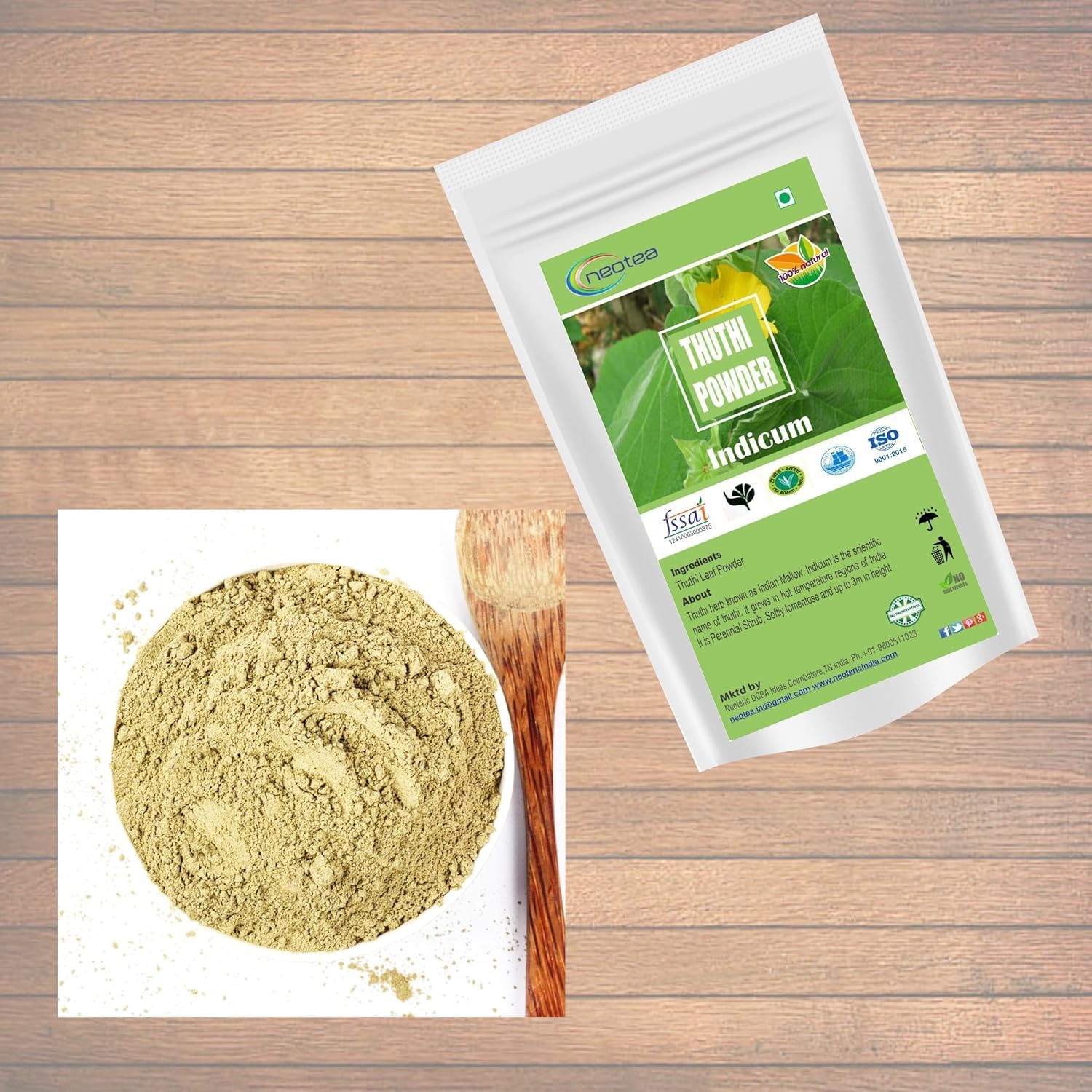 Neotea Thuthi or Abutilon Indicom Leaf Powder 300g our brand provides you with the products which are made from quality material. Providing quality standard products is our most priority for us. There are various collection of products available to choose from. Thuthi or Abutilon Indicom Leaf Powder It is useful in gout tuberculosis ulcers bleeding disorders and worms. It can be used as Digestive laxative expectorant diuretic astringent analgesic anti inflammatory anthelmintic demulcent and aphrodisiac. Decoction used in toothache and tender gums CONTENT. Abutilon indicum dried leaves in powder form. DOSAGE. 3 â 6 gm twice or thrice a day after food with warm water or as directed by the physician. THERAPEUTIC USES. Relieves constipation and treats piles. Heals wounds and boils. REFERENCE. Ayurvedic Sastric Medicine. Thuthi keerai and even its flowers is very good for ur problem. U can take without fear. Also try to take Karakarunai regularly in ur food. Avoid spicy foodsoily foodsChicken. Thuthi plant's botanical name is Abutilon Indicum and it's common English name is Indian mallow. Prepare a mixture of 50 ml each of carrot spinach and turnip leaves juice. Add some juice of bittergourd or karela leaves mixed with some buttermilk. This should be taken every morning. Turmeric has antiseptic and healing properties