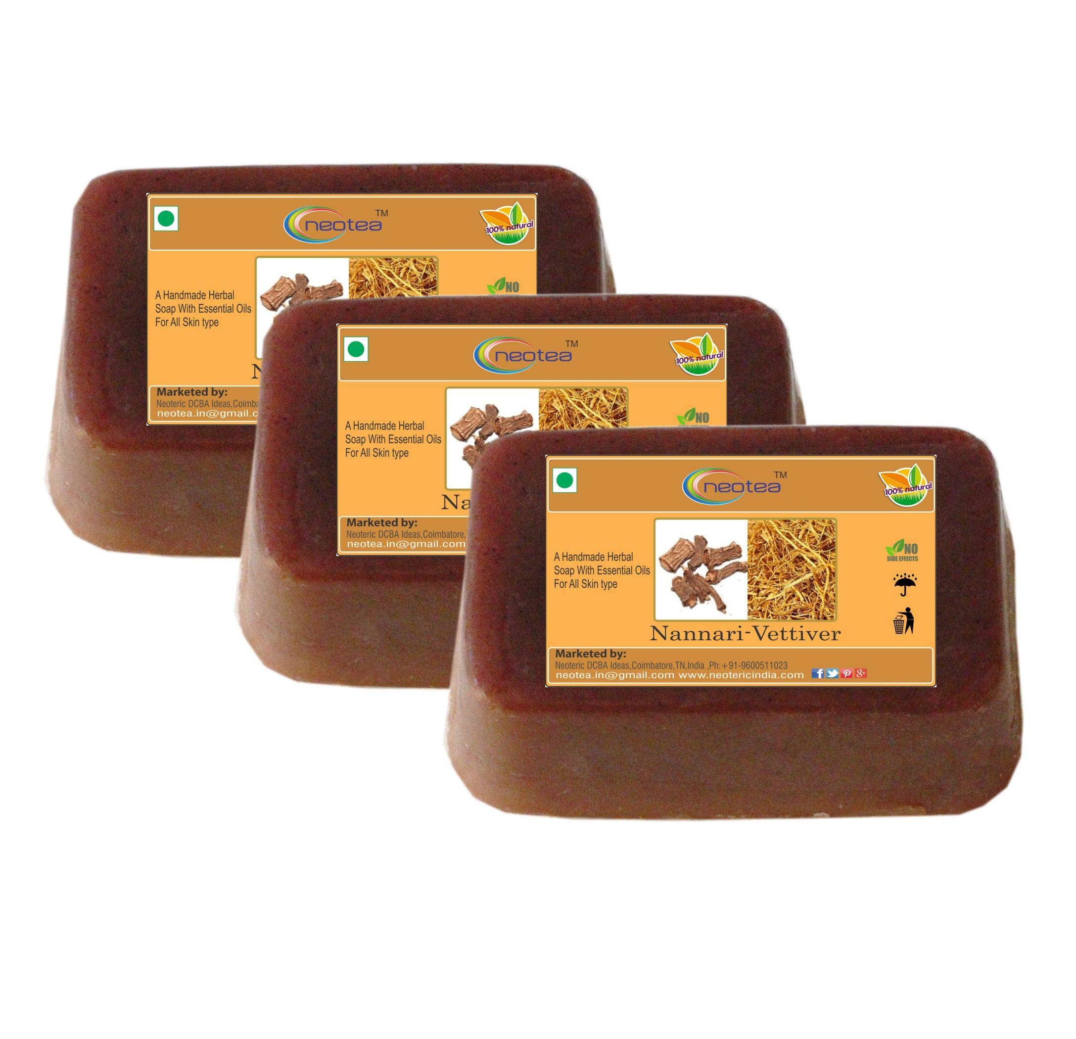 Neotea hand ade herbal soap paraben free combo pack of 3 (nannari+vettiver) 225 gm. Neotea a brand of health and household vitamins and dietary supplements. The products spectrum we offer to our customers includes Dry Fruit Herbal Powder Organic Cocoa Powder and many more.
