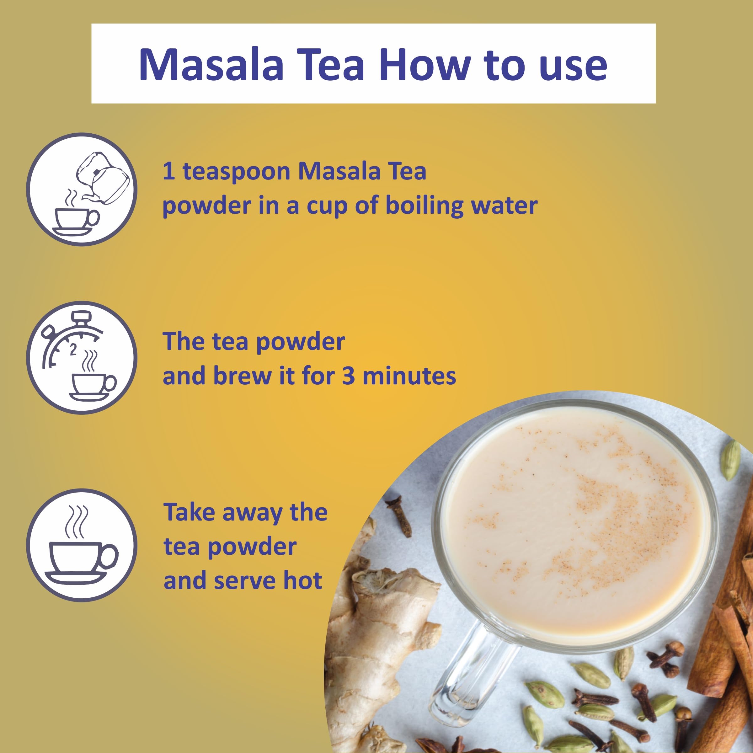 Glowing skin : give your skin a hydrated healthy glow with green tea heart health : consumption of green tea as a part of a healthy lifestyle may help maintain a healthy heart as it is thought to have a protective effect against cardiovascular diseases simply delicious flavour and great taste EASY-TO-USE: The masala powder is easy to use. Forget the hassle of grating ginger breaking cardamom etc. Just add a pinch of the powder to the brewing tea and enjoy the spicy kick in your chai.