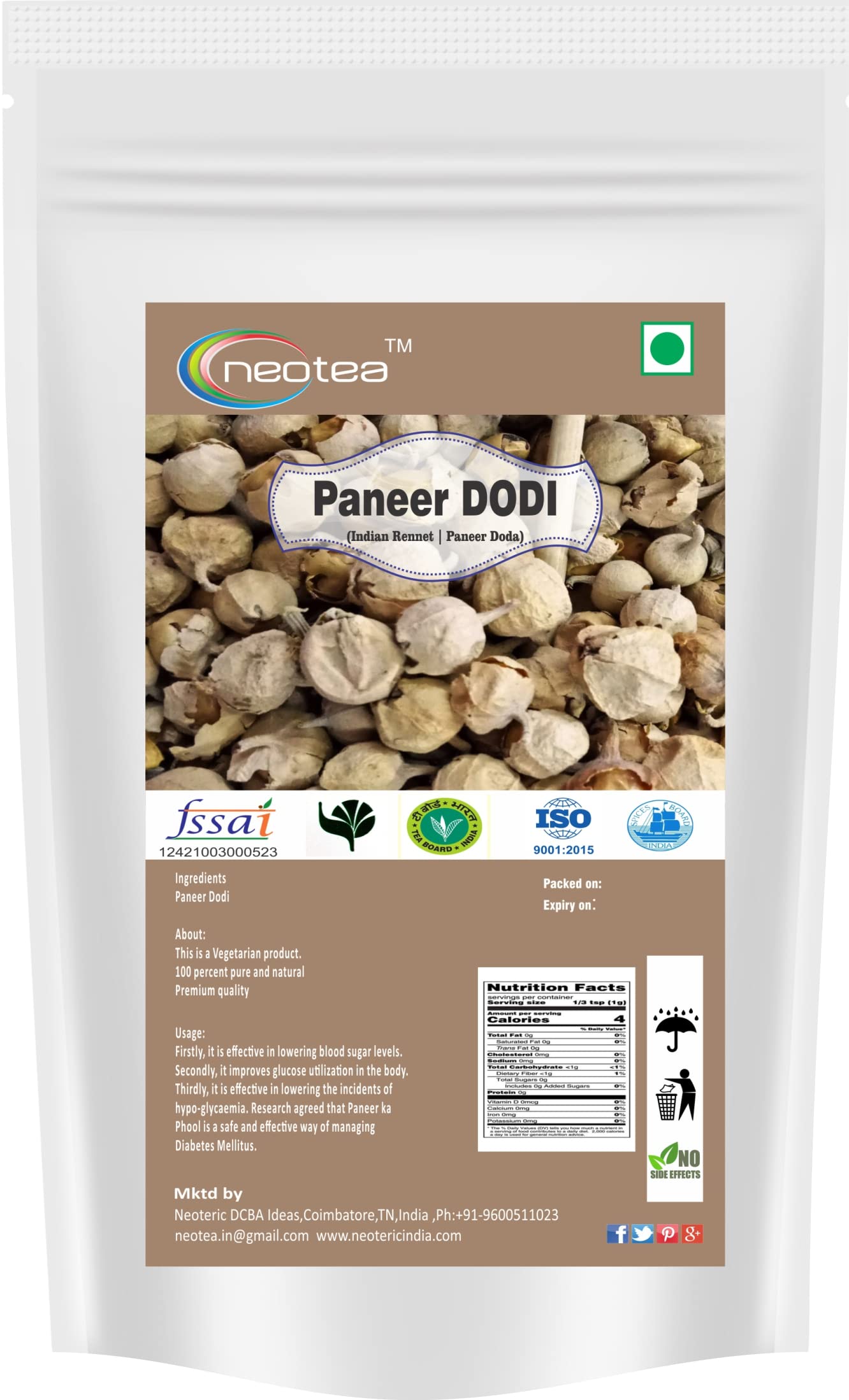 Discover the authentic taste of homemade paneer with Neotea Paneer DODI â a 100% natural coagulant sourced from Withania Coagulans traditionally used in Indian cheese-making. With its rich nutrient profile and health benefits this 300g pack is your perfect companion for making fresh soft and nutritious paneer right at home. Traditional Natural Coagulant for Paneer Making Neotea Paneer Dodi is a natural and traditional rennet that has been used for centuries in India to make fresh creamy paneer. This coagulant is derived from Withania Coagulans ensuring you get the purest form of rennet for authentic paneer that preserves the richness and flavor of traditional Indian recipes. Rich in Nutrients & Health Benefits Paneer Dodi (Withania Coagulans) is packed with a variety of essential nutrients antioxidants and medicinal properties that support overall well-being. It's believed to promote digestive health boost immunity and provide natural energy. By incorporating this natural coagulant into your paneer-making process you not only enjoy fresh cheese but also benefit from the added health advantages. Easy to Use for Fresh Homemade Paneer Making paneer at home is now simpler than ever! Neotea Paneer Dodi allows you to create soft fresh paneer with minimal effort. Just add the coagulant to hot milk follow the traditional process and within a short time you'll have delicious paneer ready for your curries snacks or desserts. 100% Pure & Chemical-Free Neotea Paneer Dodi is completely natural free from preservatives chemicals and artificial additives. Itâs the ideal choice for anyone seeking a pure wholesome coagulant for their dairy products. Itâs also a great option for those looking for chemical-free traditional ingredients in their cooking. Sustainable & Versatile Neotea Paneer Dodi is a sustainable choice for eco-conscious individuals. In addition to making paneer it can also be used in other traditional dairy preparations offering a versatile and eco-friendly solution for your culinary needs.