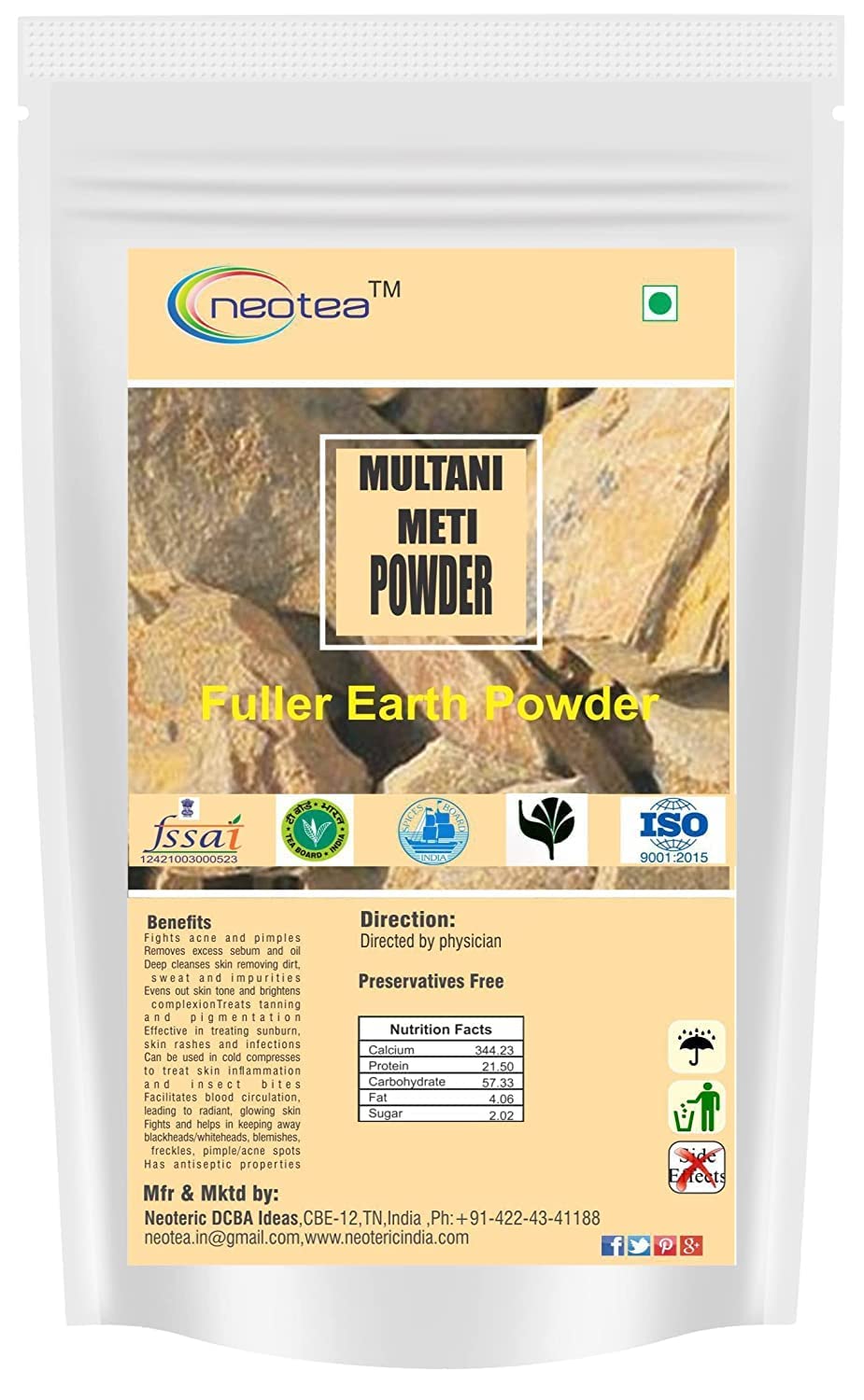 Multani Mitti -Effective in treating sunburn skin rashes and infections (multani mitti is an effective cooling agent)