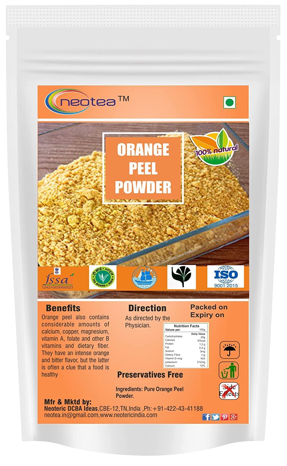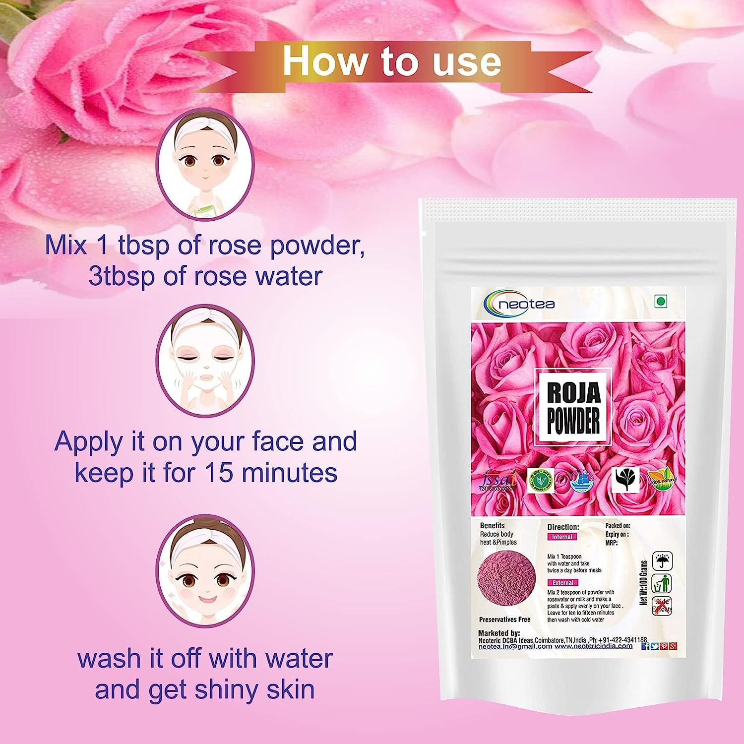 Neotea Rose Petal Powder 100gm Multanimitti Powder 100gm & Orange Peel Powder 100 gm Combo Pack