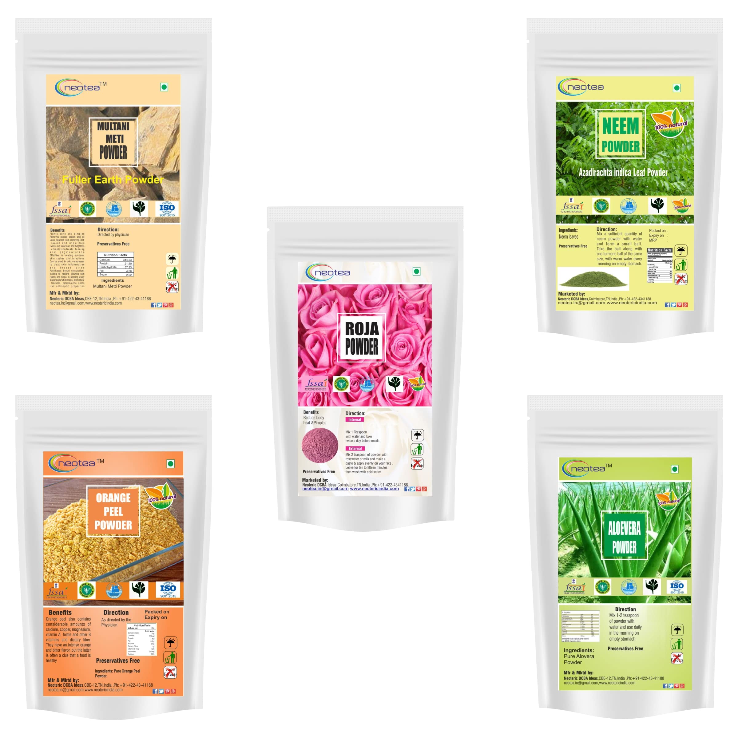 Neotea Rose Petal PowderOrange Peel Powder Aloe Vera Powder Neem PowderMultani Mitti Powder For Skin Combo Pack Each 100 gm