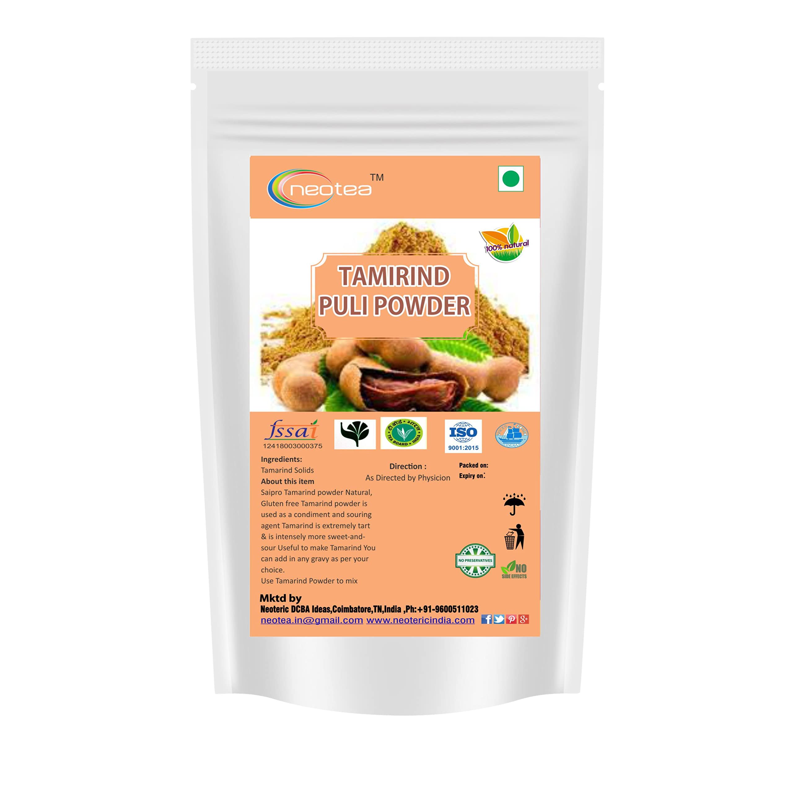 Neotea tamrind puli powder neotea a brand of health and household vitamins and dietary supplements. The products spectrum we offer to our customers includes dry fruit herbal powder organic cocoa powder and many more Neotea Tamarind Powder is made using a spray-drying process to preserve the pure natural flavor of tamarind. This finely ground powder offers a tangy sweet-and-sour profile that is more concentrated than fresh tamarind making it the perfect condiment and souring agent for your culinary creations. Add a burst of flavor to your favorite sauces chutneys lentil dishes and pickles with this versatile powder. Its unique balance of tartness and fruitiness enhances marinades barbecue sauces and dry rubs for a distinctive twist. You can also mix it into smoothies curries couscous and rice for a zesty kick. 100% natural and free from artificial additives Neotea Tamarind Powder brings the authentic taste of tamarind to your kitchen making it a must-have ingredient for both everyday cooking and special recipes. Key Features: Made from 100% natural ground tamarind. Intensely tart and sweet-and-sour flavor. Perfect for chutneys curries sauces marinades and dry rubs. Adds a unique flavor to rice couscous and lentil dishes. Versatile and easy to use in both savory and sweet recipes.