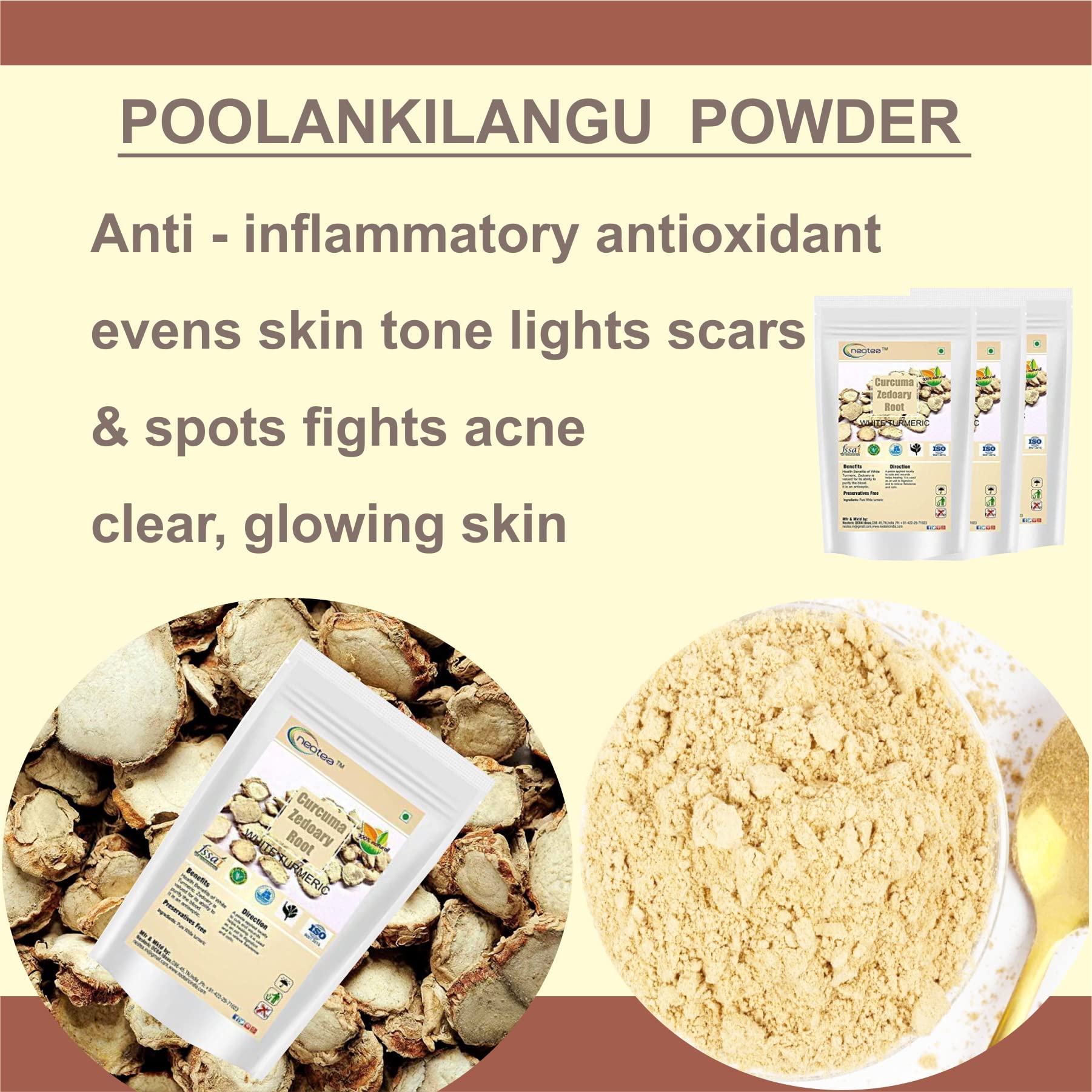Neotea poolankilangu cuucuma zedoary powder 300g. Neotea a brand of health and household vitamins and dietary supplements. The products spectrum we offer to our customers includes Dry Fruit Herbal Powder Organic Cocoa Powder and many more. The botanical name of white turmeric is Curcuma Zeodaria. It is also called as Kappor kachri Poolankilangu and Kachur. The rhizomes are cut dried and pulverized for powdering. It possesses all the great benefits of turmeric powder. The white turmeric is preferred as it does not stain the skin like the wild turmeric.Make a paste using water and the white turmeric powder. Just apply it on the hair from roots to the tips of the hair and let it sit for 25 minutes and then rinse. For more hydration to hair you can also add aloe vera honey.