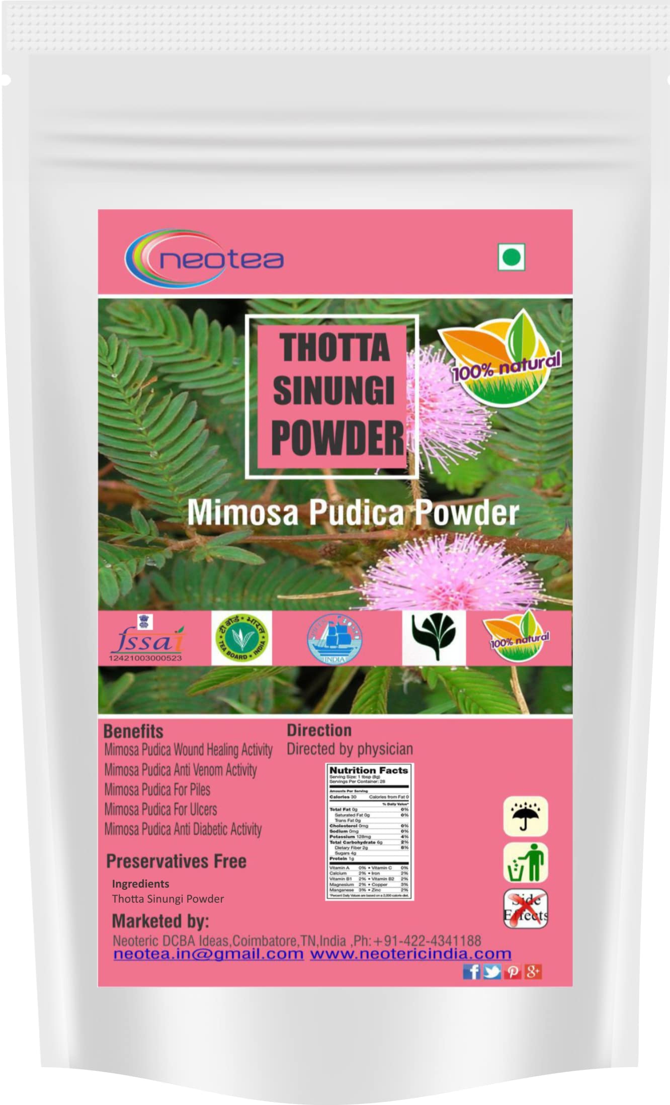 100% Natural & Organic: Neotea Thotta Sinungi Powder (Mimosa Pudica) is made from the purest natural ingredients free from additives preservatives or chemicals ensuring a high-quality herbal supplement.