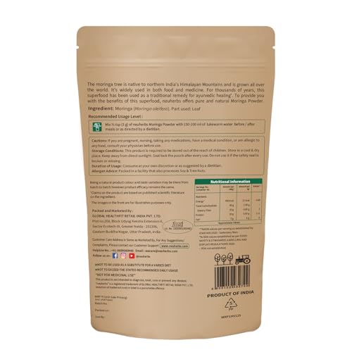 neuherbs brings to you the highly nutritious superfood Moringa Powder. Made from pure natural & organic moringa leaf to help you with growth & holistic wellness. Moringa powder has been in use for various health advantages especially among the health-conscious people as studies have shown that moringa powder is rich in Protein vitamins A C Calcium Iron & Fiber like essential nutrients. Moringa powder benefits by enhancing immunity improving digestion supporting weight loss & also eyesight. neuherbs organic moringa powder is made without any added preservatives colours or fragrances to provide original moringa powder & its related benefits.