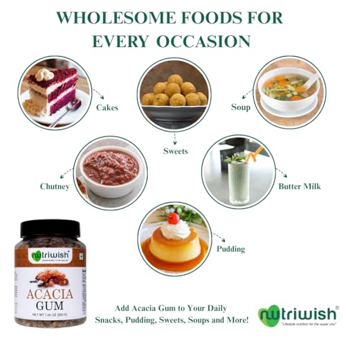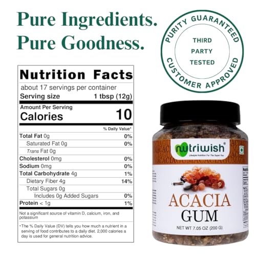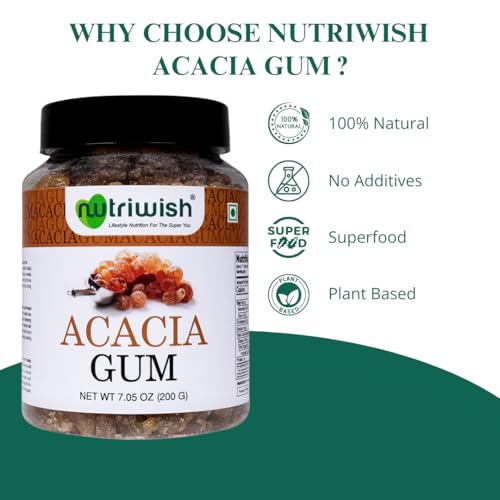Nutriwish Acacia Gum 7 oz (200g) | 100% Natural Water-Soluble & Preservative-Free | Perfect for Herbal Mixes & Beverages