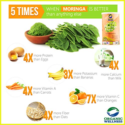 Packed With Nutrients: Organic Wellness Moringa Powder is a nutrient-packed powerhouse enriched with 90 + nutrients and 40 + antioxidants. It is a rich source of vitamin A vitamin C iron protein fiber calcium magnesium and potassium.