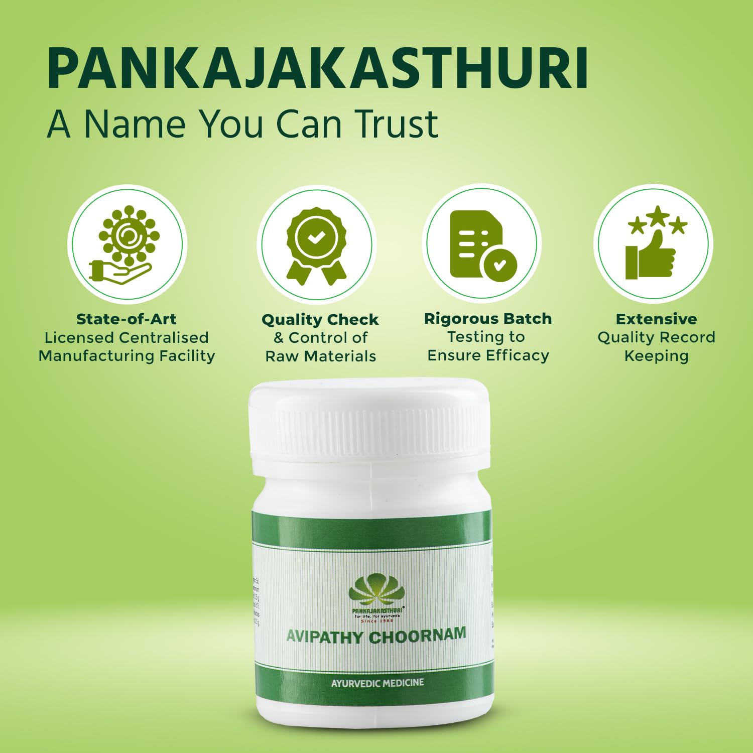 Avipathy Choornam is a traditional Ayurvedic herbal powder formulation renowned for its gentle yet effective purgative properties. This 20-gram pack contains a carefully crafted blend of herbs that work harmoniously to provide relief from constipation. The formulation is particularly beneficial for managing Pitha-related conditions including various liver disorders. This classical Ayurvedic preparation offers a natural approach to maintaining digestive health. The powder form makes it convenient to measure and consume as per the physician's guidance. While being potent in its action Avipathy Choornam is known for its balanced approach to digestive wellness. It's important to note that the dosage should be strictly followed as prescribed by your Ayurvedic physician for optimal results. The powder comes in a well-sealed package to maintain its authenticity and efficacy.