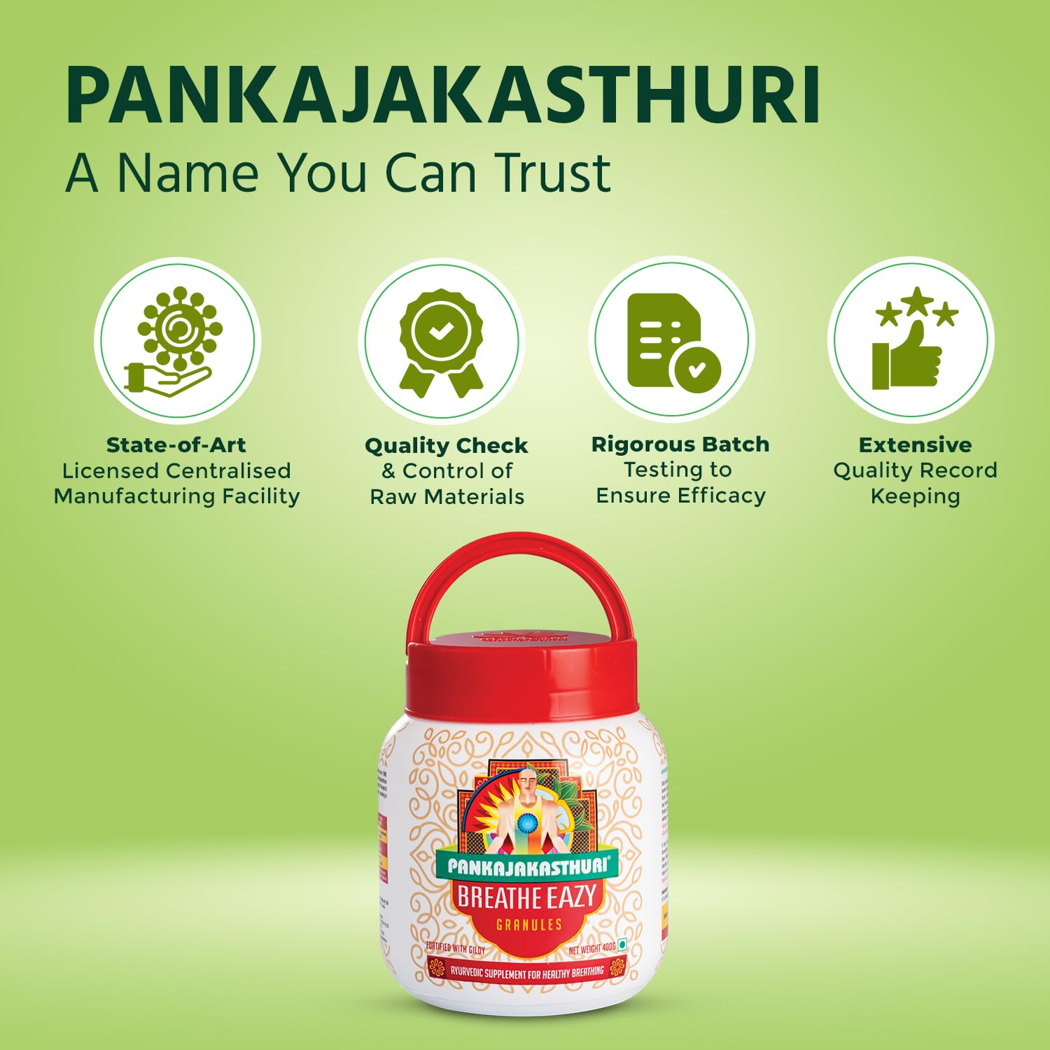 Pankajakasthuri Breathe Eazy Granules Ayurvedic For Cough & Cold Sinus Asthma Bronchitis & Breathing Disorders | Natural Immunity Booster | Unique Blend of 17 Ayurvedic Herbs - 400g