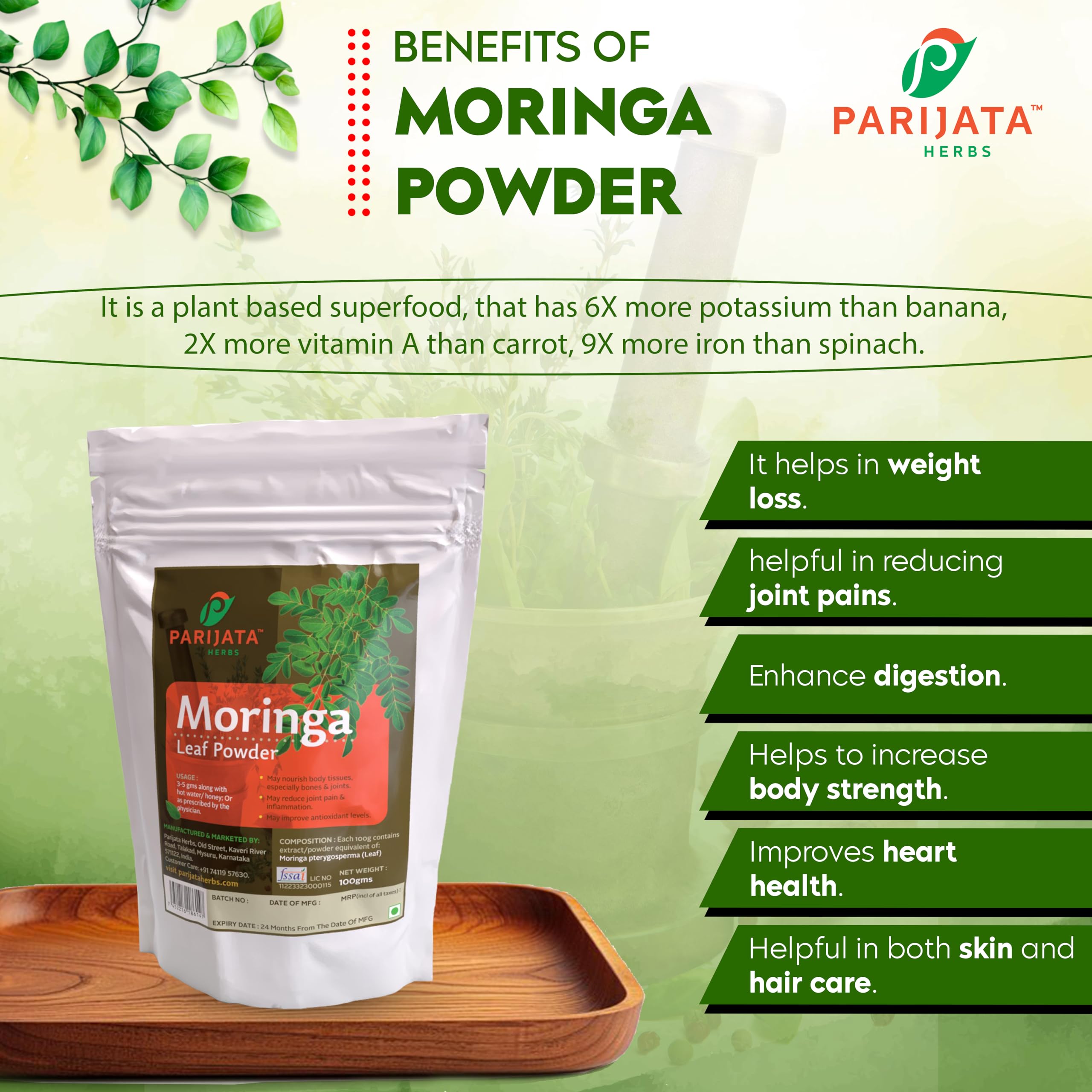 Moringa Commonly known as Drumstick Moringa is an exceptionally nutritious vegetable tree with a variety of medicinal uses. The leaves are rich natural sources of vitamins and minerals. Historical texts reveal that ancient Indian kings and queens used Drumstick in their diet to maintain general health and alleviate inflamed joints.