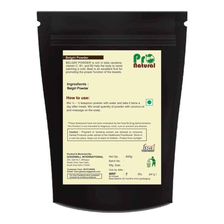 Pronatural Belgiri Powder | Bealgiri - Bael Phal Dry| Aegle Marmelos | Wood Apple, 400gms