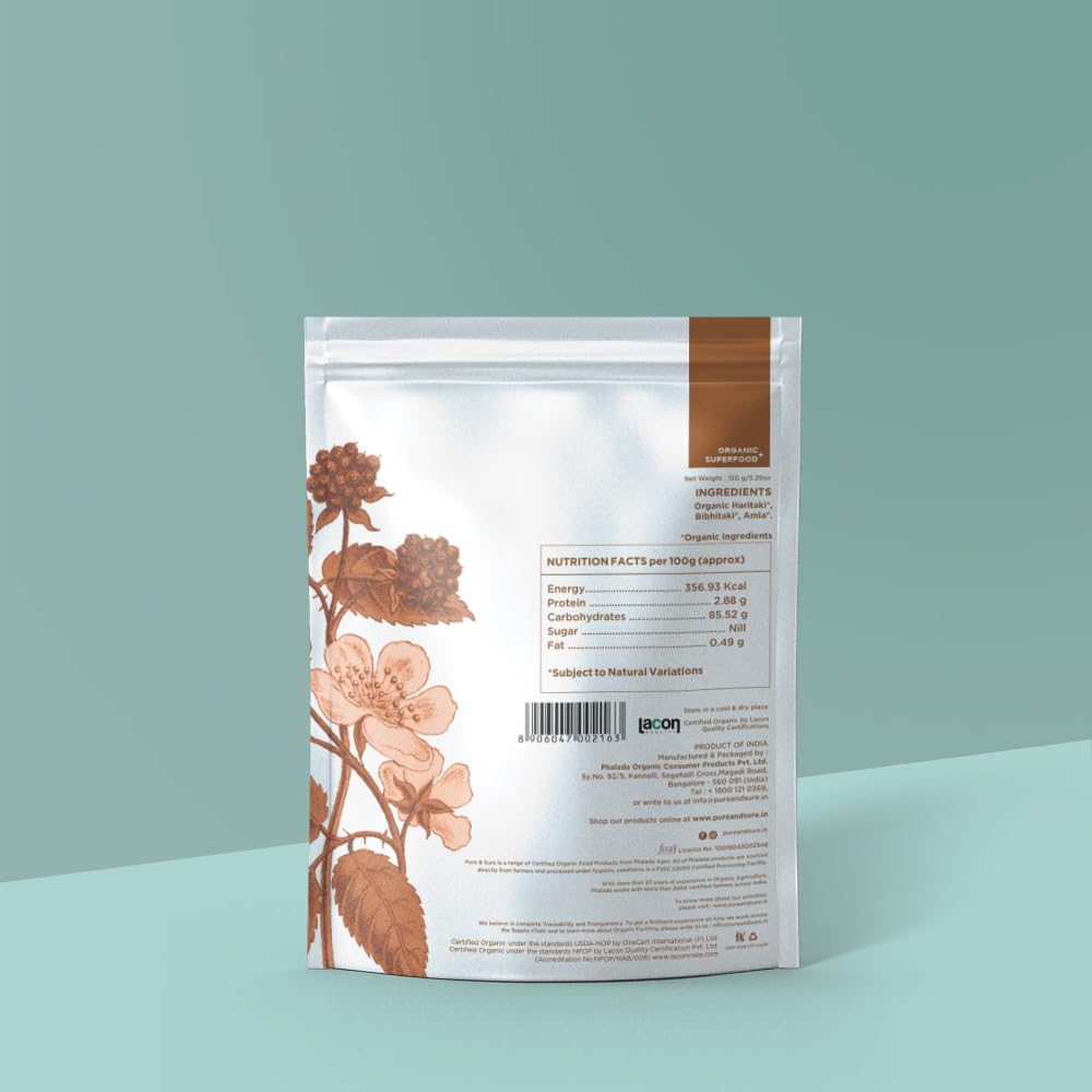 Pure & Sure Organic Triphala Powder 100gm (Pack of 2) | 100% Natural Triphala Churan | Helps Relieve Constipation | Quick Acidity & Gas Relief | Non-GMO | No Added Preservatives