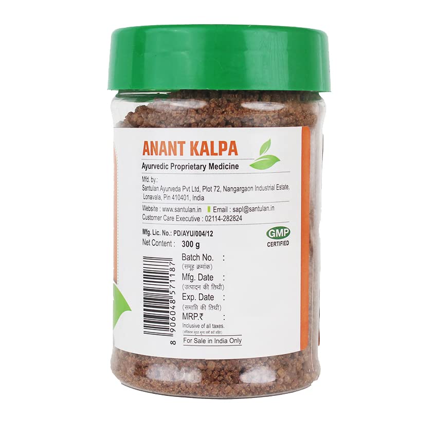 Santulan Ayurveda Anant Kalpa-300GM Each (Pack Of 4) Purifies The Blood and get Golden Oldie HerbsSukanthi Pills-1gm