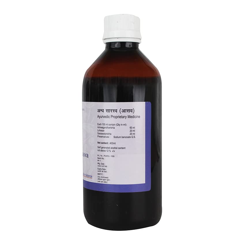 Santulan Ayurveda Ashwasaraswa Asav-400ML Each (Pack Of 3) Rejuvenates Mind And Body and get Golden Oldie HerbsSukanthi Pills-1gm