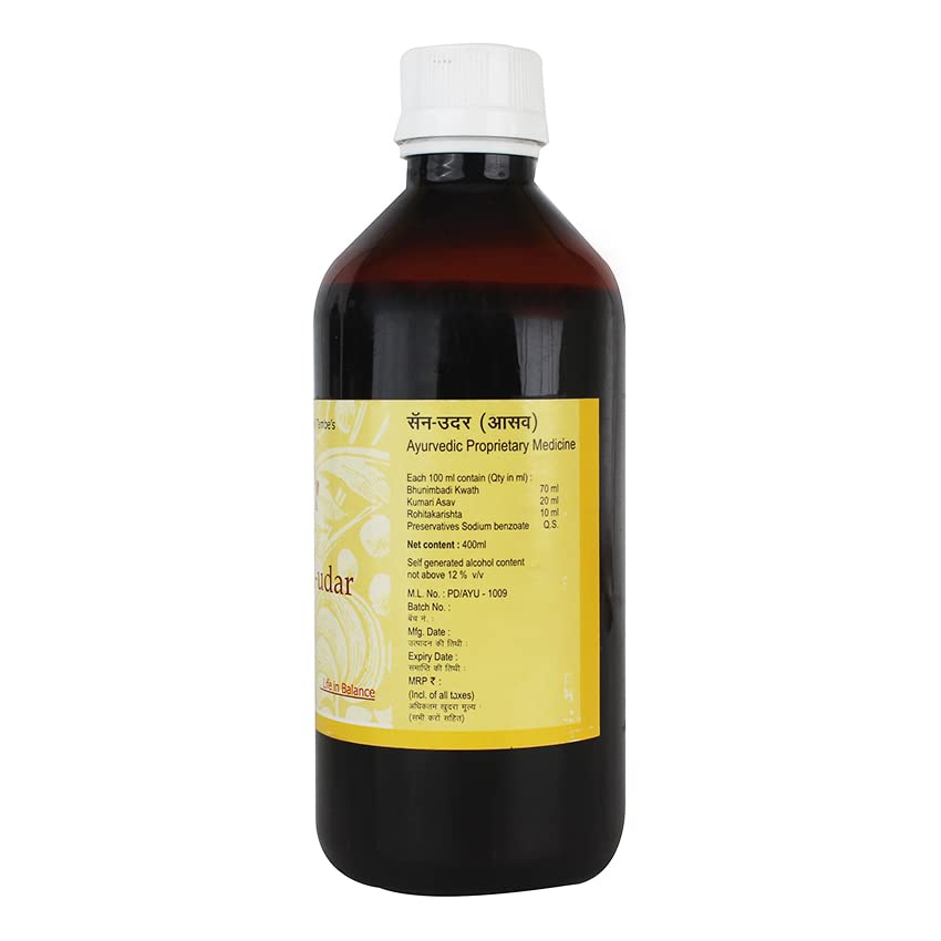 Santulan Ayurveda San Udar Asav-400ML Each (Pack Of 1) For Health Of Yakrut and get Golden Oldie HerbsSukanthi Pills-1gm