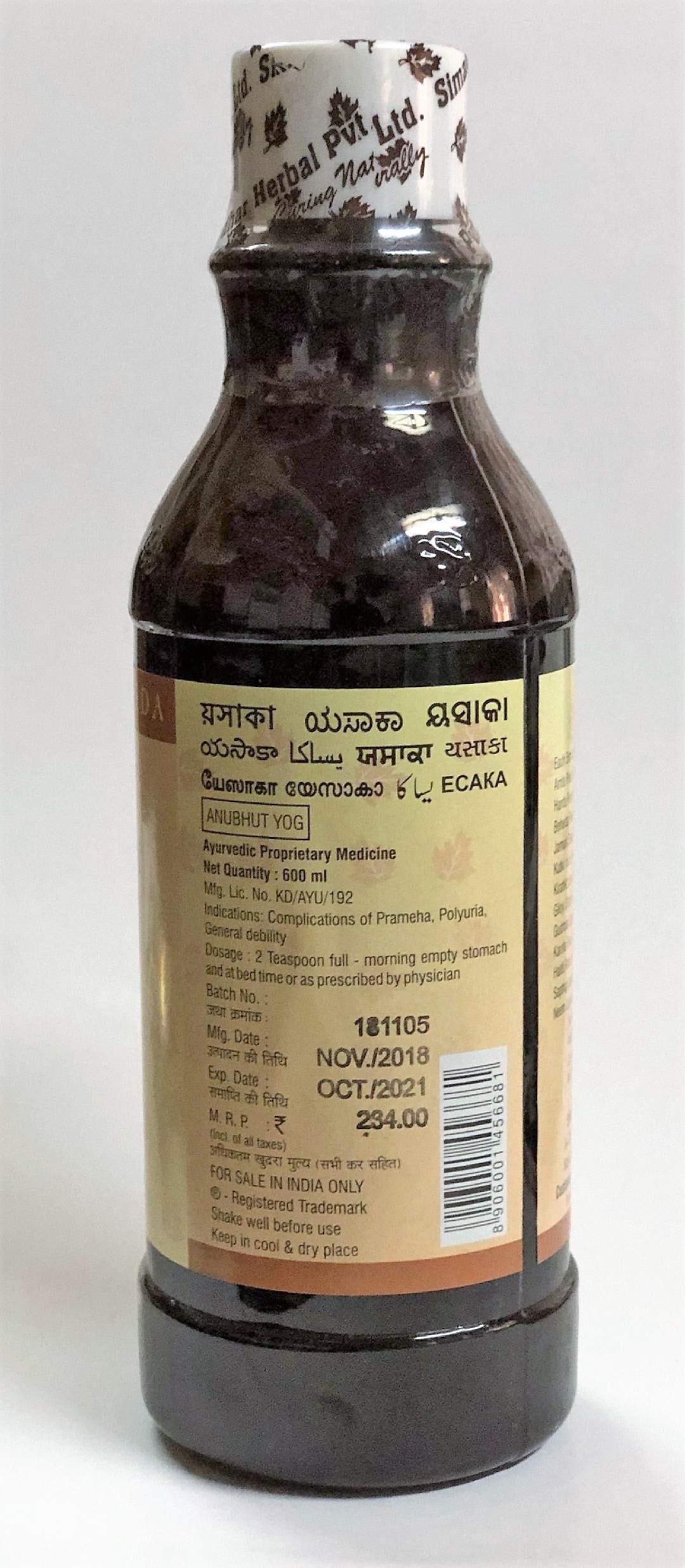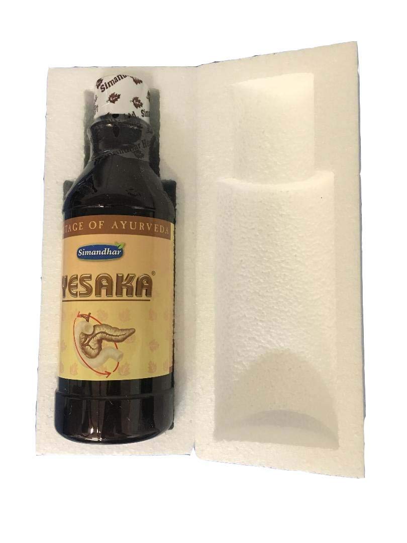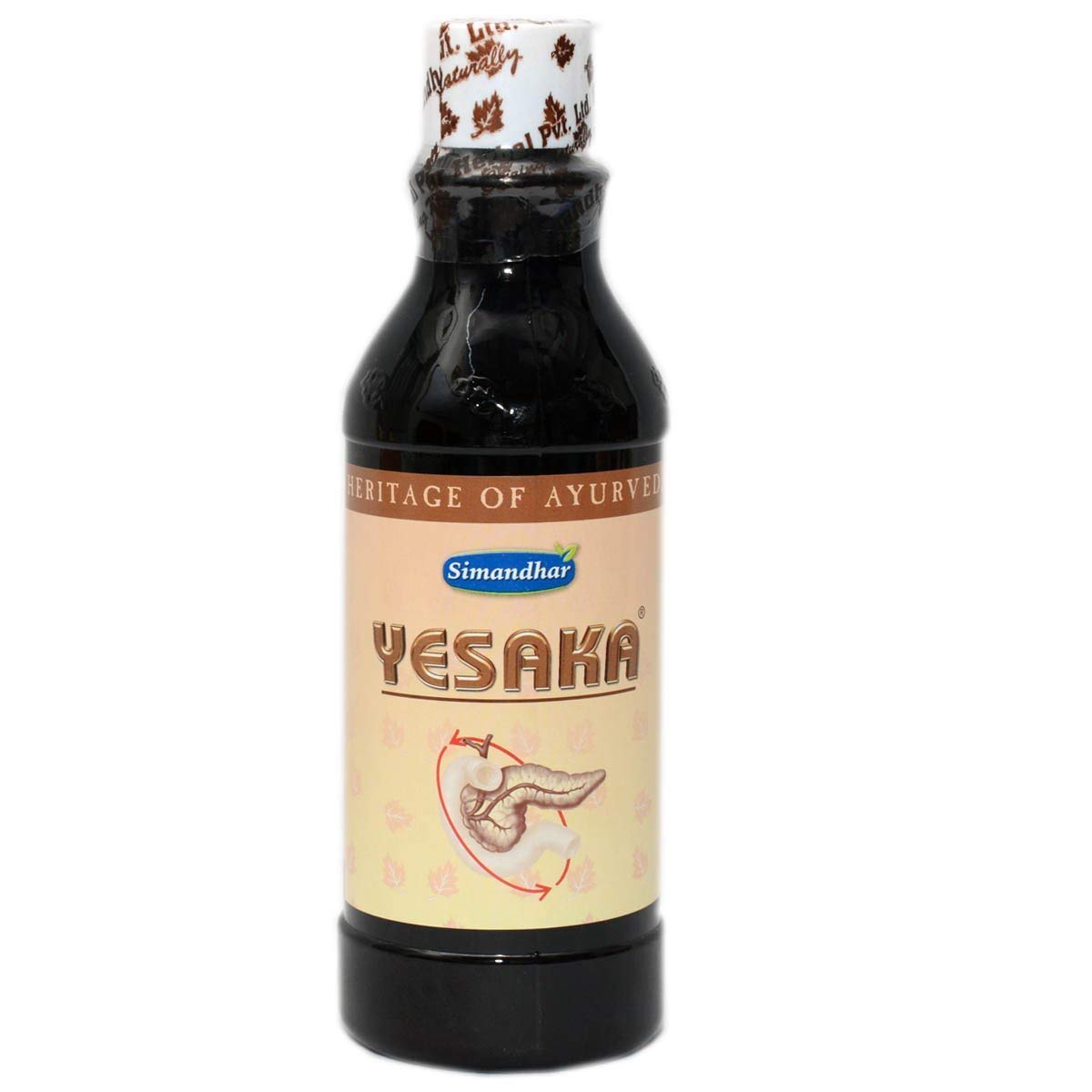 Simandhar Yesaka Syrup for sugar metabolism management ayurveda herbal product. It contains neem, jamun, amla, karela, harde, giloy, and other effective herbs.Dietary Advice & Life style Avoid sweets, food products containing refined carbohydrates, glucose and sugar.Simandhar Yesaka Syrup is an ayurvedic herbal proprietary medicine. It is a combination of different time-tested herbs that are known to control excess sugar level in the blood. The herbs used stimulates secretion from pancreas which acts an as agent to normalize blood sugar.