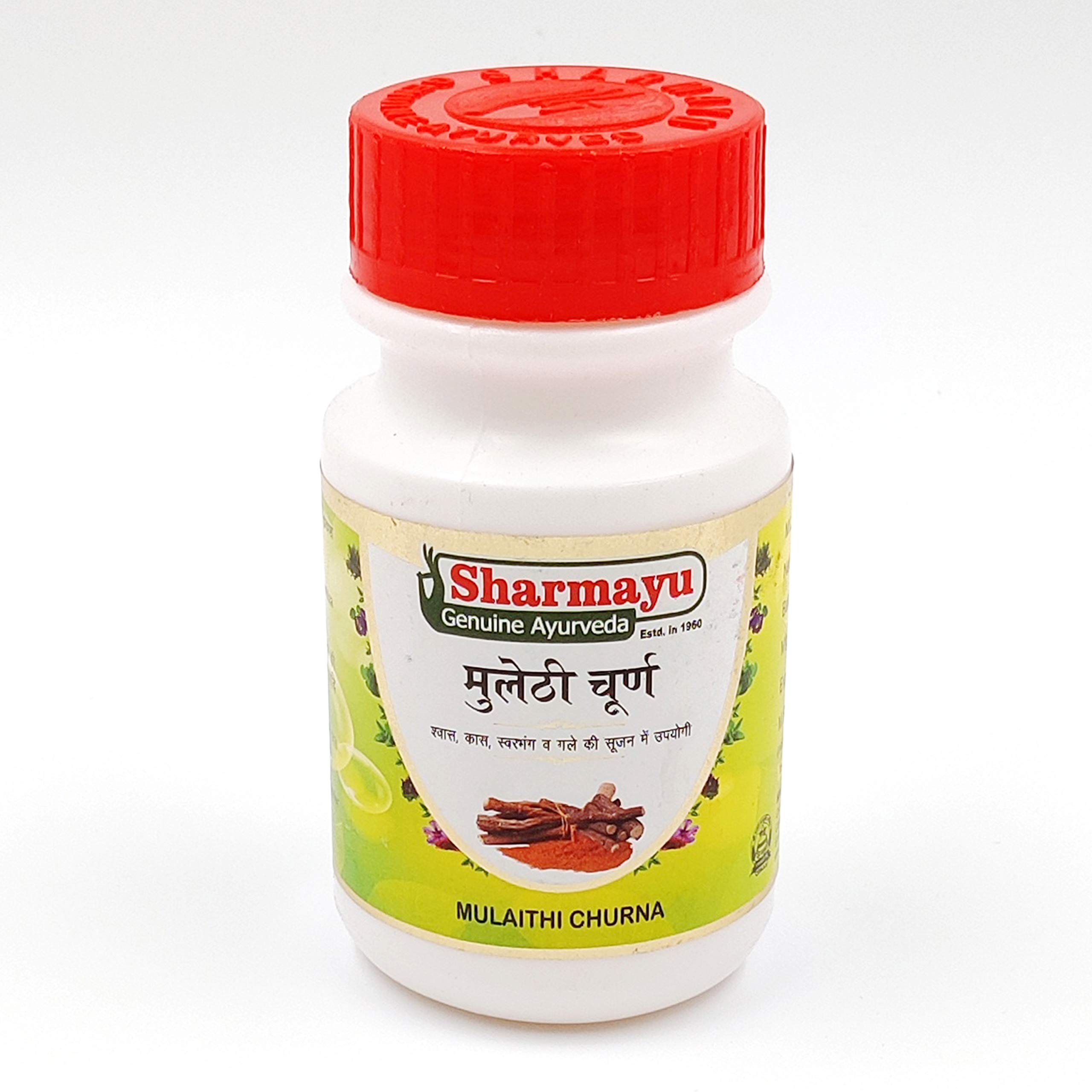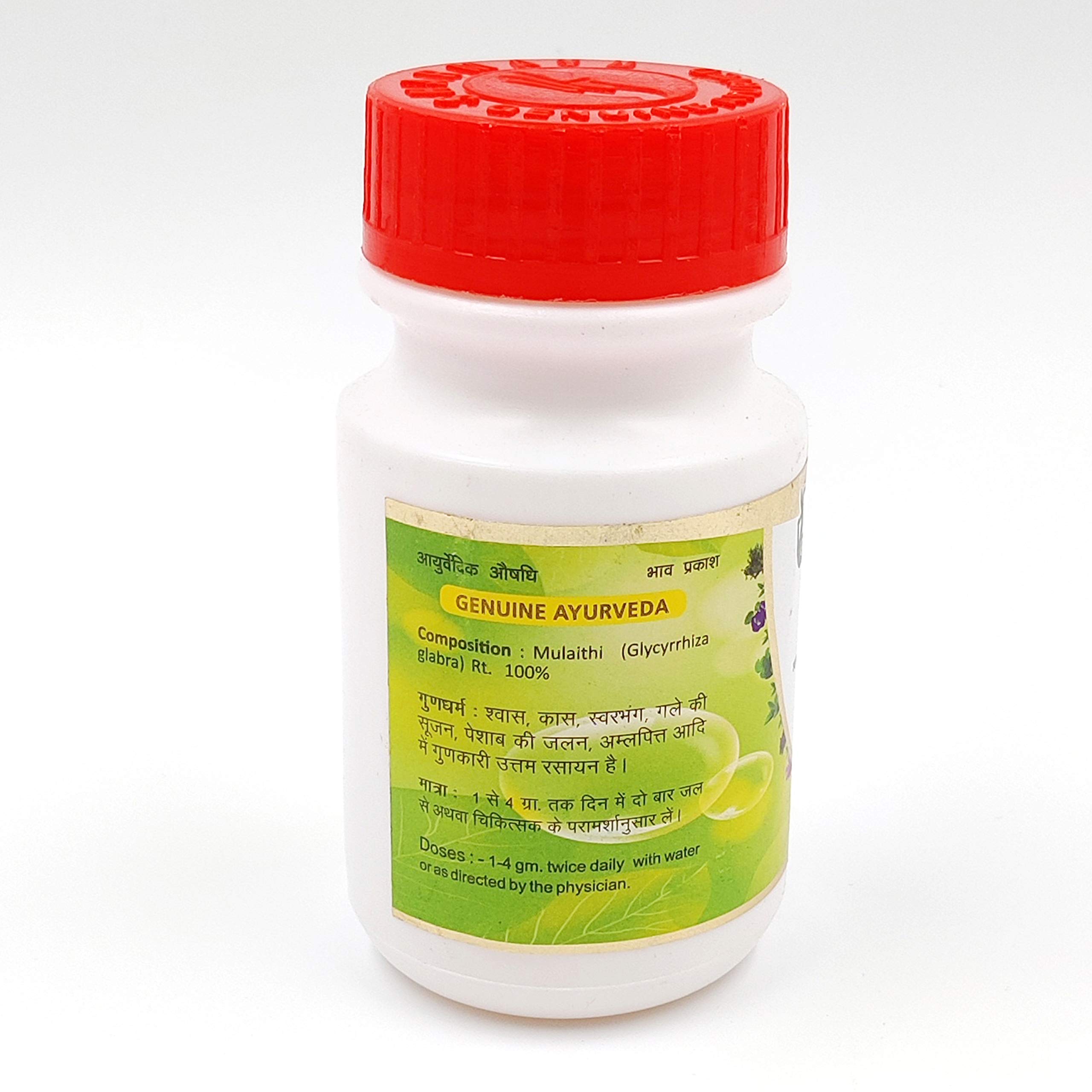 Mulaithi (glycyrrhiza Glabra) Rt. 100% Doses: 1-4 gm. twice daily with warm water or as directed by a physician.