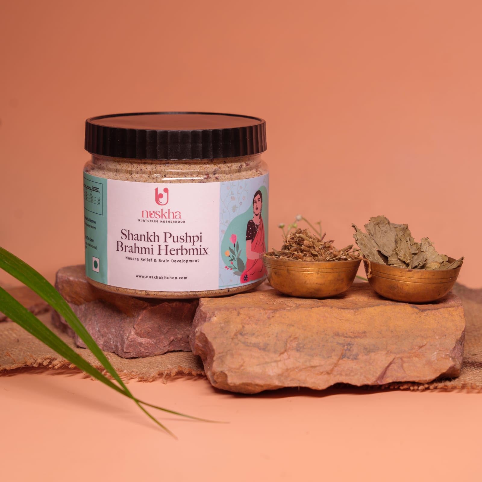 Holistic Pregnancy Support Ensure a healthy and balanced pregnancy with Nuskhaâs combo combining the nutritional benefits of Shatawari Herb Mix the mental wellness support of Shankhpushpi Brahmi Herb Mix and the comprehensive guidance of the Garbhavasth