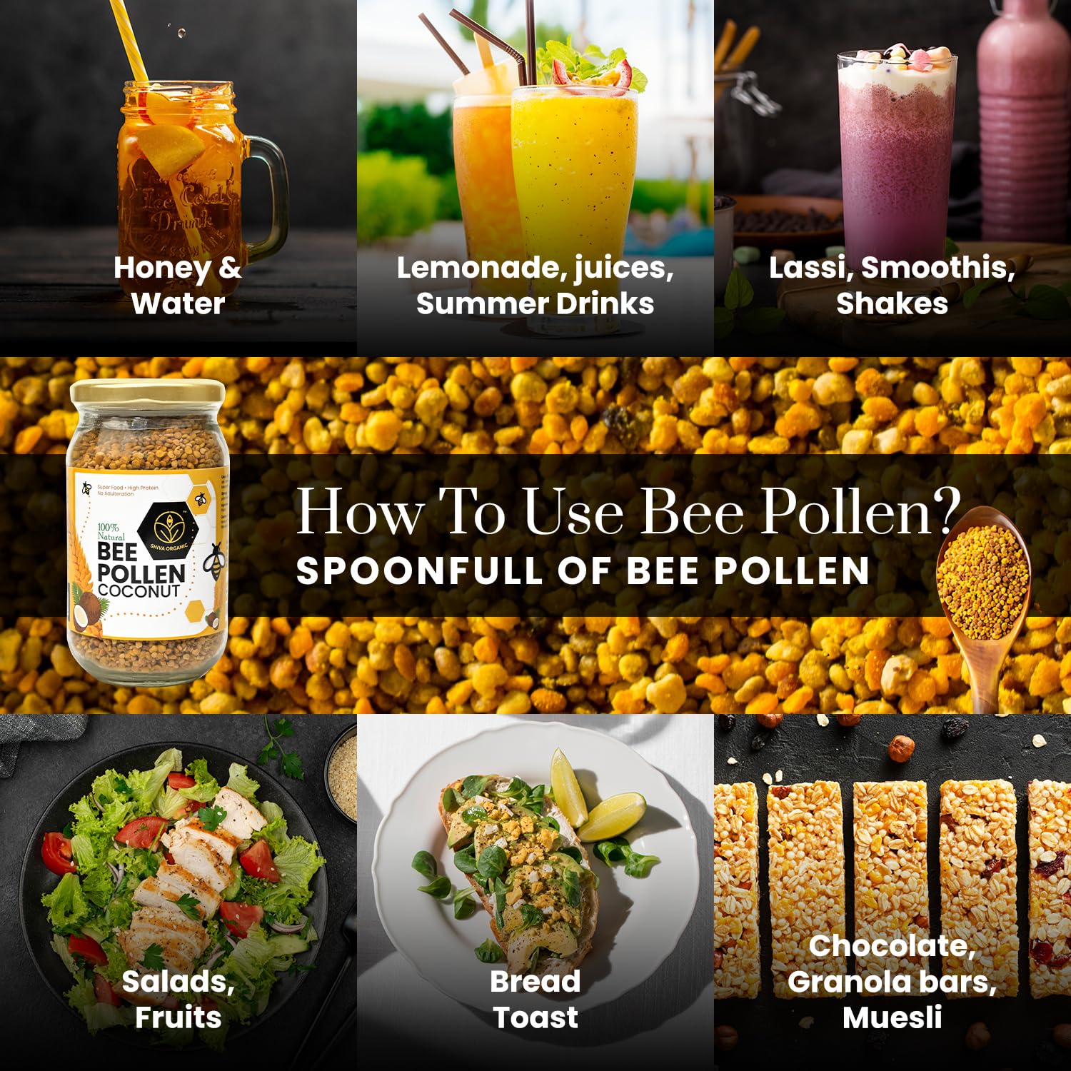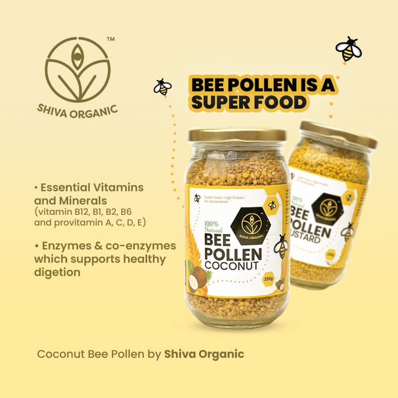 Shiva Organic Coconut Bee Pollen Granule - ImmunityEnergy Booster | 100% Natural | Rich in Protein Vitamin B Minerals Anti-Oxidants | Improves Digestive Bone BP health - 125g