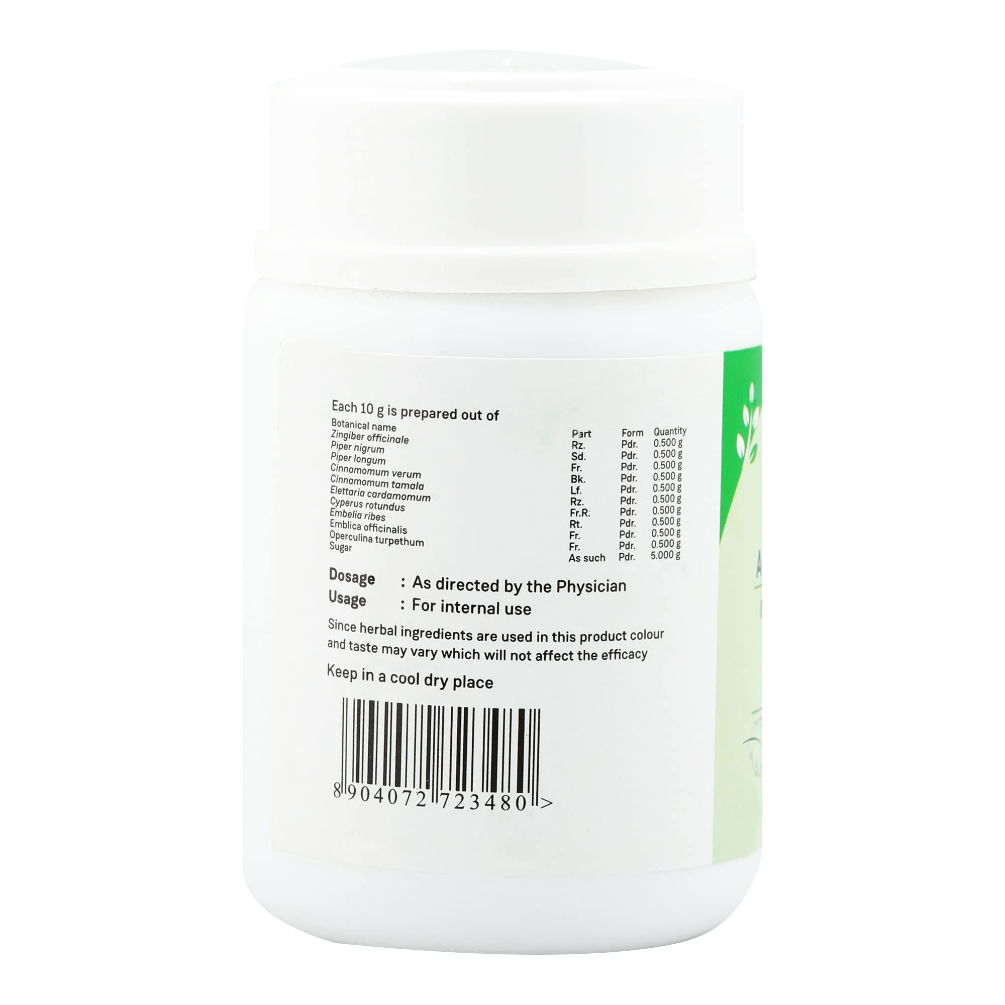 Virechana or methodical purgation is one among the Panchakarma the modalities meant for internal cleansing in Ayurveda. Virechana is the most efficient way of instantly pacifying aggravated pitta in the system. Avipathi choornam is a widely popular virechana preparation. The term Avipathi denotes the absolute safety of the drug. It is a powder that causes controlled purgation and is recommended for use even in and geriatric patients. Combination of Shunti (Zingiber officinale) Pippali (Piper lom) Maricha (Piper nigrum) Ela (Eletteria cardamomum) Twak (Cinnamomum verum) Patra (Cinnamomum tamala) Musta (Cyperus rotundus) Amalaki (Embilica officinalis) Vidanga (Embelia ribes) Sharkara (Saccharum officinarum) and Trivrt (Operculina turpethum).
