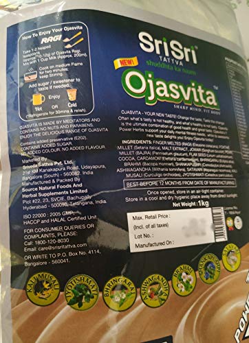 Sri Sri Tattva Ojasvita Ragi Foil - Drink Mix for Sharp Mind & Healthy Body - 1kg (Pack of 1)