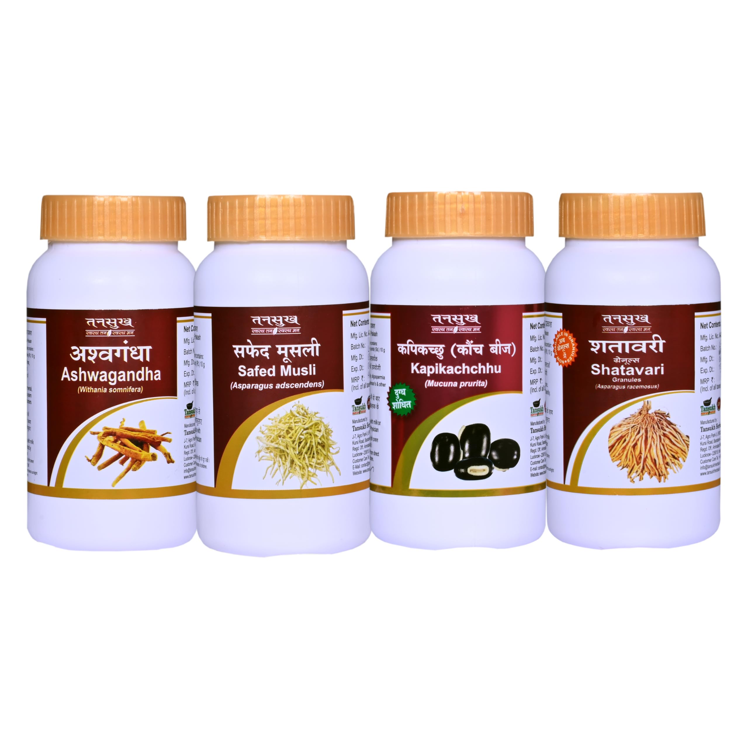This Ayurvedic pack combines four time-tested herbal powders â Ashwagandha Safed Musli Kaunch Beej and Shatavari â each known for supporting strength stamina and overall wellness. Ideal for those looking to naturally support energy and immunity this combo offers a holistic approach to daily health. All powders are pure natural and suitable for regular use under guidance. A perfect addition to your wellness routine rooted in Ayurvedic tradition.