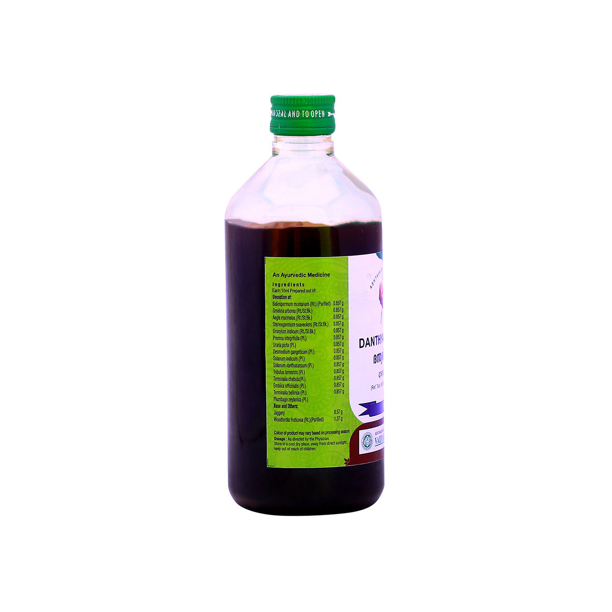 Vaidyaratnam DanthyarishtamVaidyaratnam Danthyarishtam is an herbal decoction. It is traditionally used in Ayurveda to deal with spleen and liver-related issues. This tonic is a form of anaerobic fermentation.Form: LiquidIdeal for: AdultsType: Herbal tonicGender: Both men and womenPackage content: 450ml in a plastic, airtight bottleIngredientsVaidyaratnam Danthyarishtam is enriched with herbal goodness. It is made withJaggeryWild castorFire flame bushIndian leadwortTriphala or 3 fruits, which include Indian Gooseberry, Myrobalan, and Belleric MyrobalanDasmoolam- 10 roots which include Indian Bael, Dusky Fire Brand Bark, Indian Trumpet Flower, Kashmir Tree, Rose Flower Fragrant, Sal Leaved Desmodium, Indian Uraria, Puncture Vine, Black Nightshade and Yellow Fruit NightshadeFeaturesVaidyaratnam Oushadhasala was established in 1941. The institute is renowned as a manufacturer of Ayurvedic personal care products. The brand is located in Ollur, Kerala, and is known for almost 500 classical and more than 150 proprietary health supplements. Vaidyaratnam DanthyarishtamIs easy to useIs 100% herbalIs considered a bio-safe productIs made with the best quality ingredientsIs not known to have adverse effects on the bodyComes with a long shelf life of 12 months from the date of manufactureDoseVaidyaratnam Danthyarishtam should be consumed after consulting an Ayurvedic physician. Generally, the below steps are followed to have the supplement.Take the tonic before mealsHave 15-30ml of the tonic a dayTake the herbal supplement twice a dayTipsVaidyaratnam Danthyarishtam stays fresh and usable for a long if the below tips are followed.Store at a cool and dry placeLegal Disclaimer: Statements regarding dietary supplements have not been evaluated by the FDA