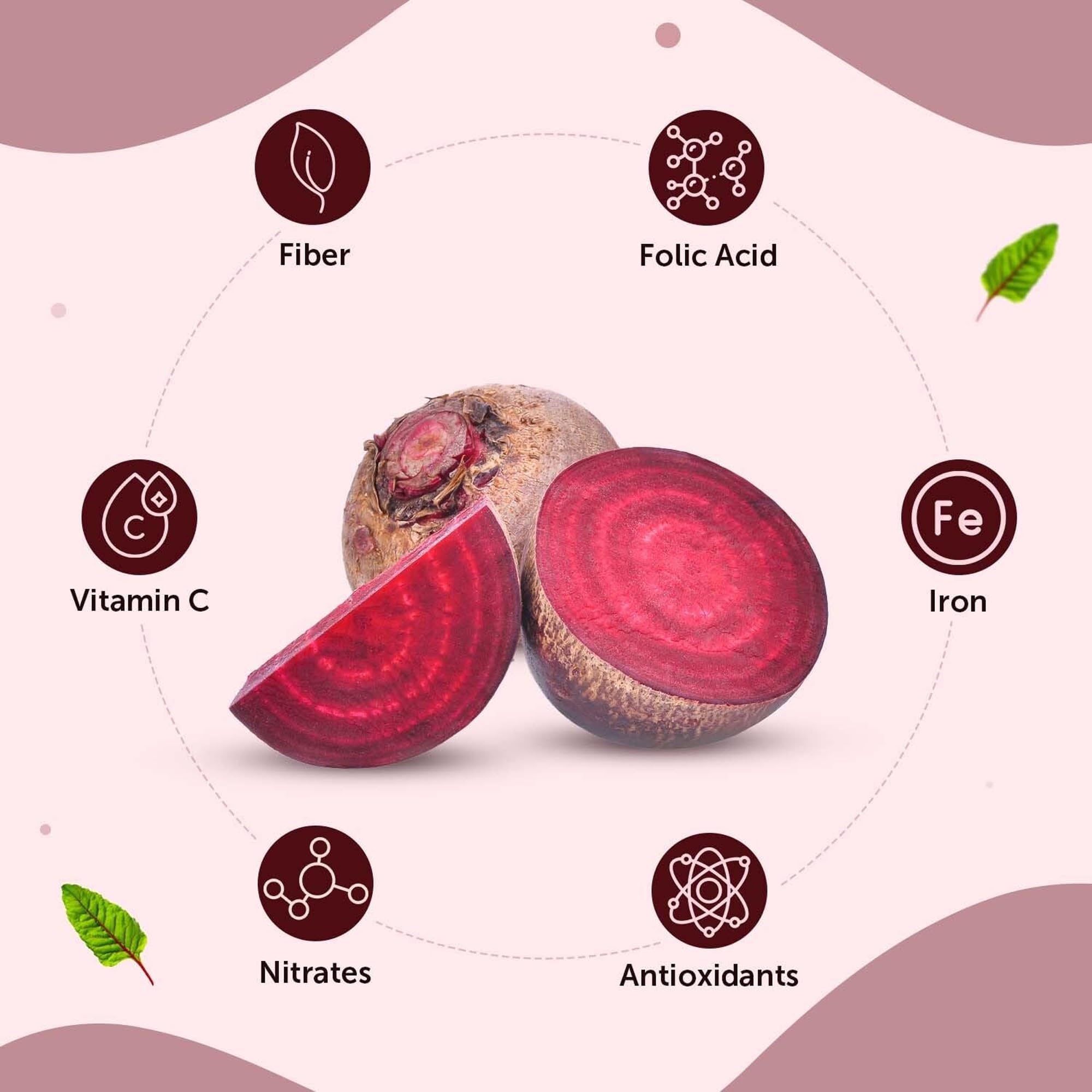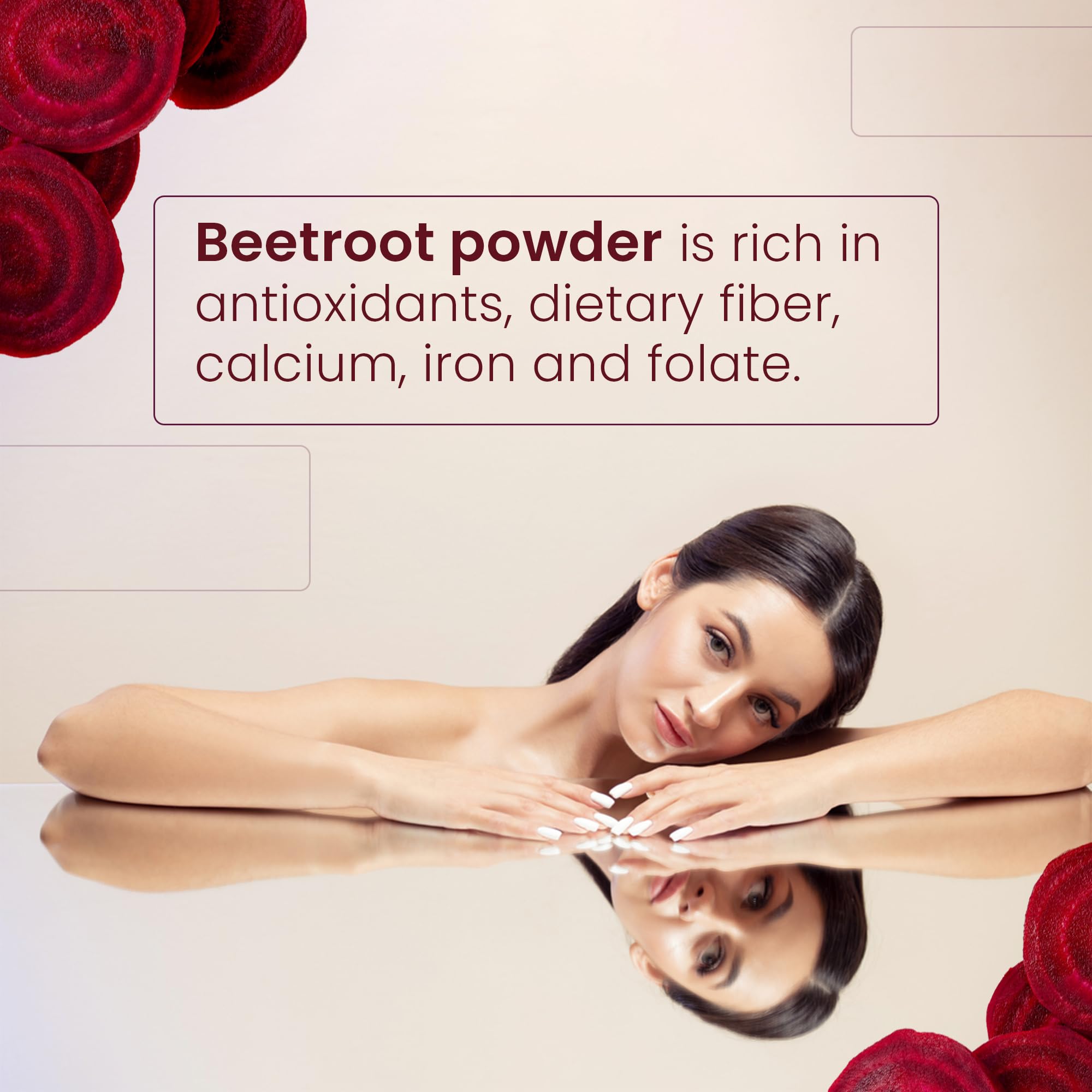 • Rich in Antioxidants: Beetroot Powder is packed with antioxidants like vitamin C and beta-carotene which help fight free radicals and protect cells from damage promoting skin and hair health.