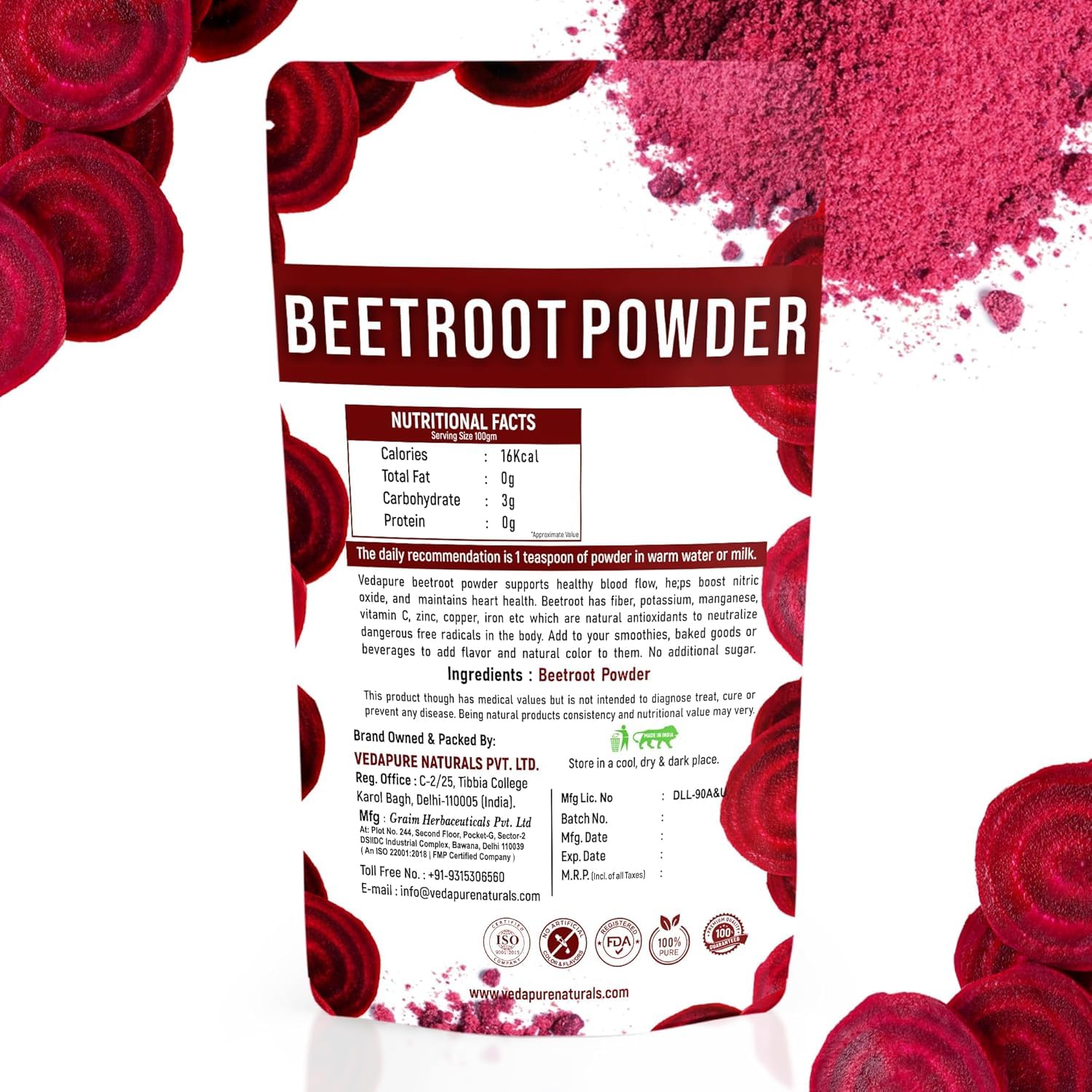 Vedapure Naturals Pure Beetroot Powder for Face (Face Pack) | Hair (Hair Mask) | Lips | Drinking | Pre- Workout | Supports Blood Pressure Levels | 100 GM