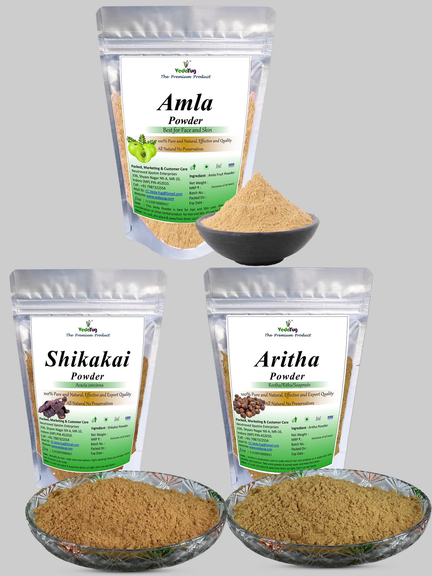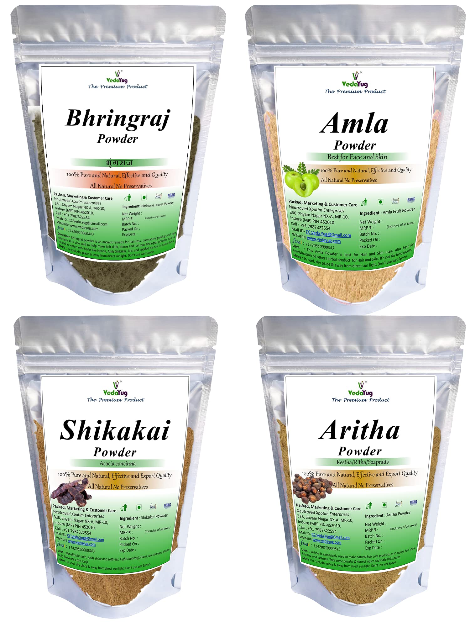 VY VedaYug Amla Reetha Shikakai & Bhringraj Powder |Combo Powder Pack for Hair Care | Hair Pack Combo for Cleansing & Hair Conditioning (Pack of 4 100g each Total 400g)