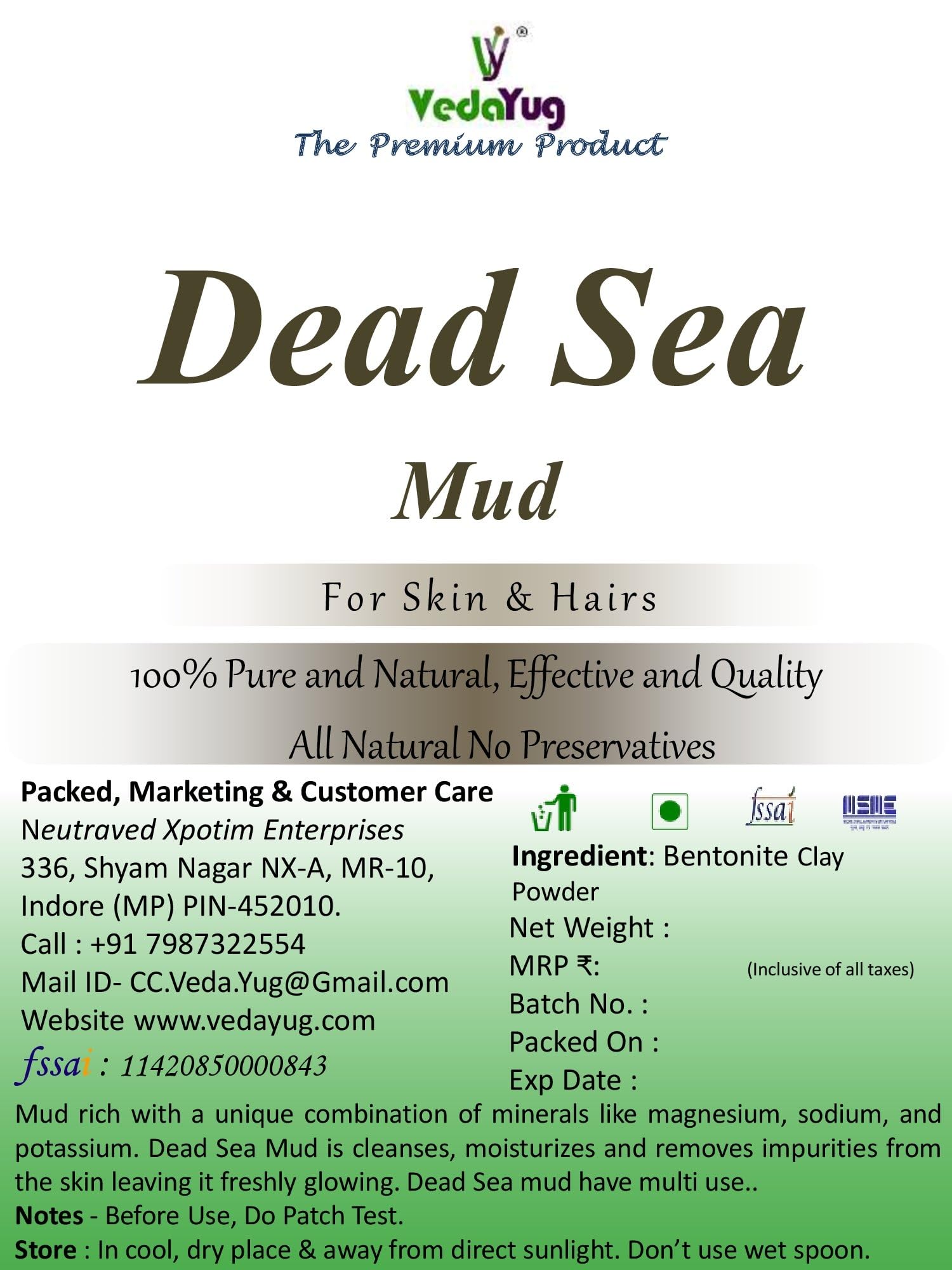 VY VedaYug Dead Sea mud is 100% Natural and pure. It does not contain any additives fragrances or animal products.