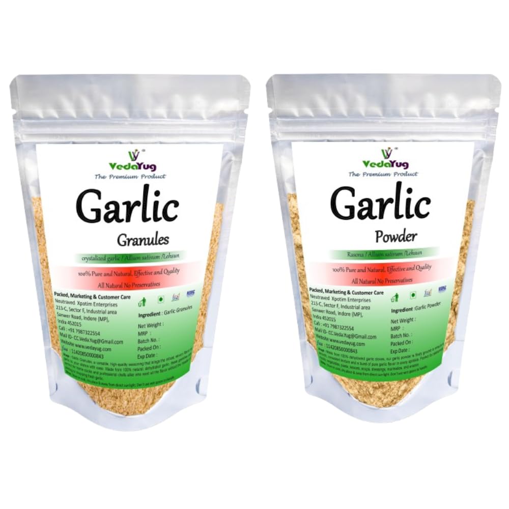 VY VedaYug Garlic Powder and Garlic Granules 100% Pure | Ready to use (100g x 2) = 200g