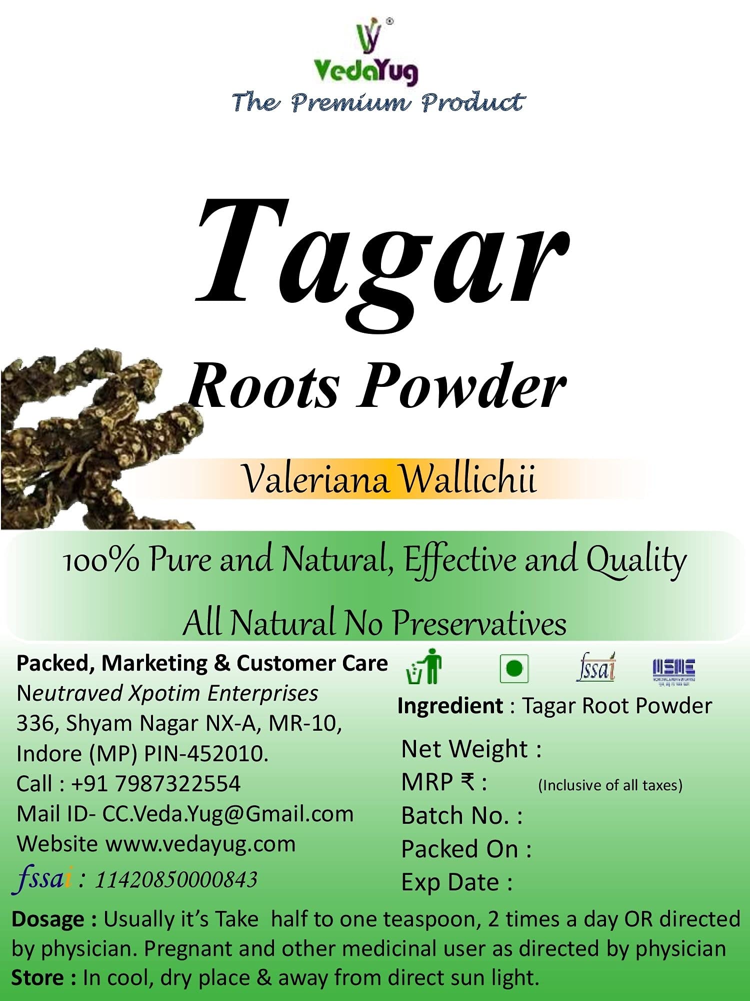 Made With Pure Natural Tagar (Root) Herbs.