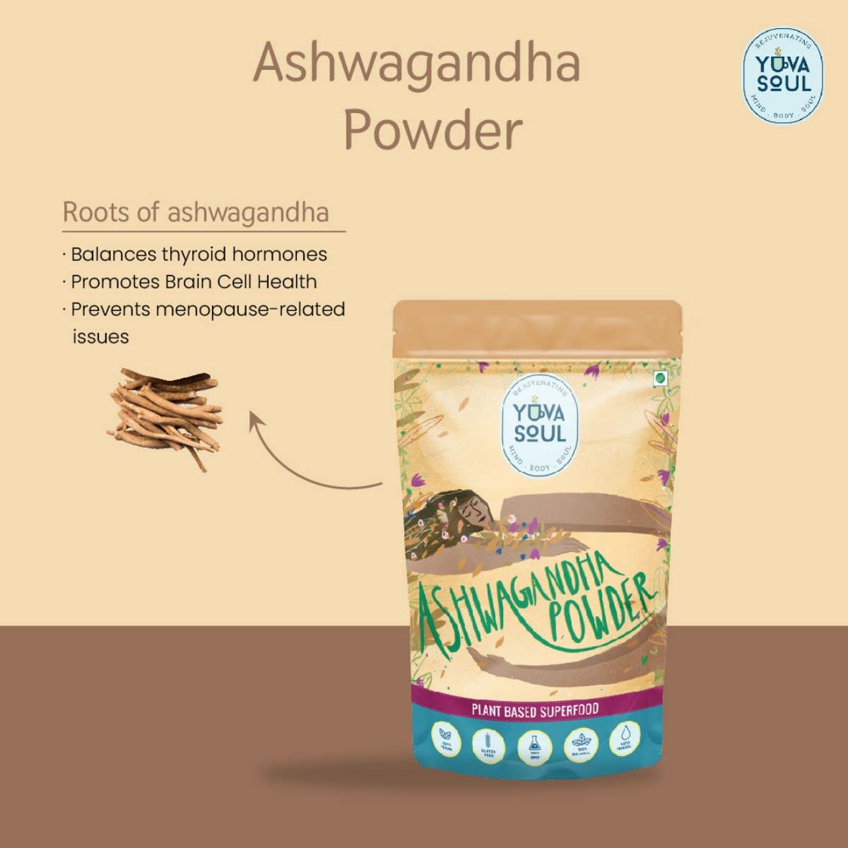 YUVA SOUL Combo Pack of Ashwagandha Herbal Powder(60 Grams) And Shatavari Herbal Powder(60 Grams) and Tulsi Herbal Powder(60 Grams)