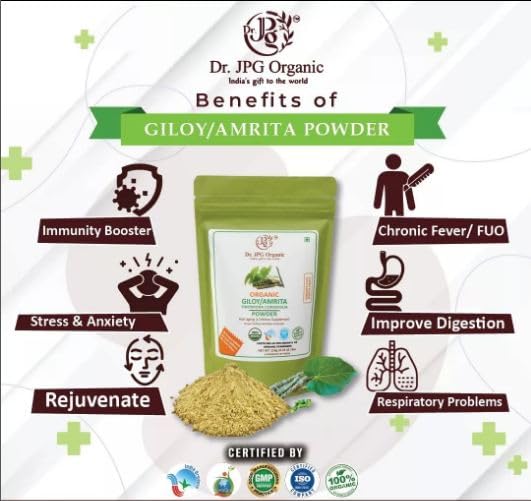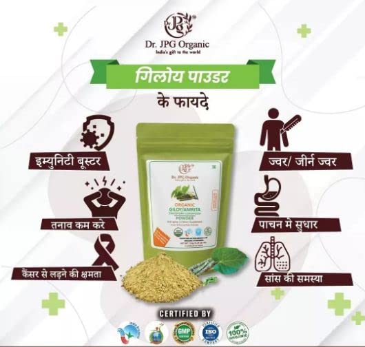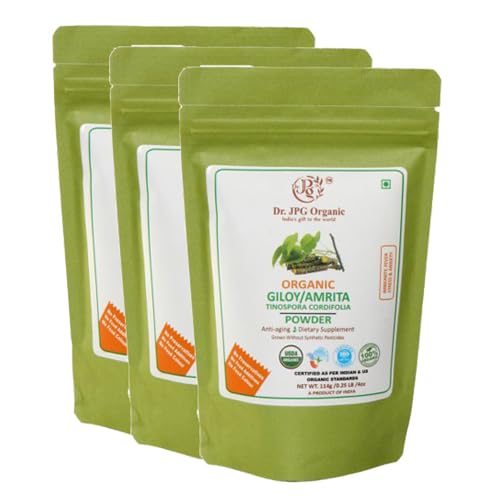Dr. JPG Organic Giloy Powder/Guduchi/Gulvel Steam Powder/Tinospora Cordifolons/INDIA ORGANIC Certified / 114g Pack Of 3