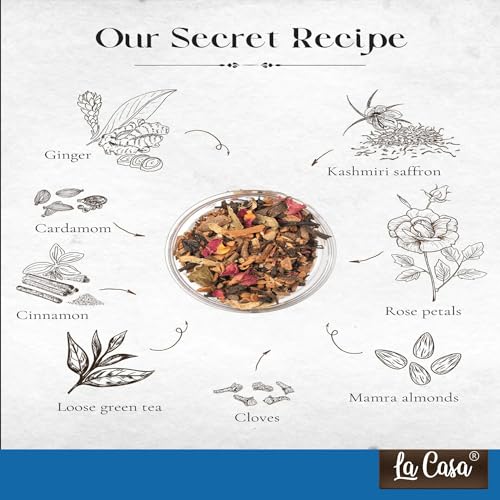 You'll LOVE our Premium Kashmiri Kahwa --Here's Why: - 100% Natural Organic No preservatives or "fillers" & Great Flavor! - Packed in a no barrier Glass Container let us tell you how important that is when using high quality Kashmiri Kahwa! - La Casa is a Indian Brand selling food products for over 15 years buy with confidence! - Enjoy Premium Kashmiri Kahwa with your loved ones.
