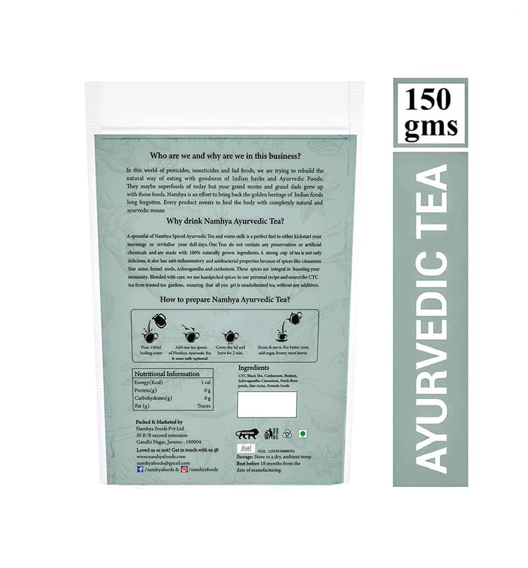 Namhya Spiced Black Loose Leaf Tea (150g) - Immunity Booster Herbal Tea | Ayurvedic Immunity Tea with Ashwagandha, Brahmi, Cinnamon | Natural Fat Burner & Cold Relief | Caffeine-Free