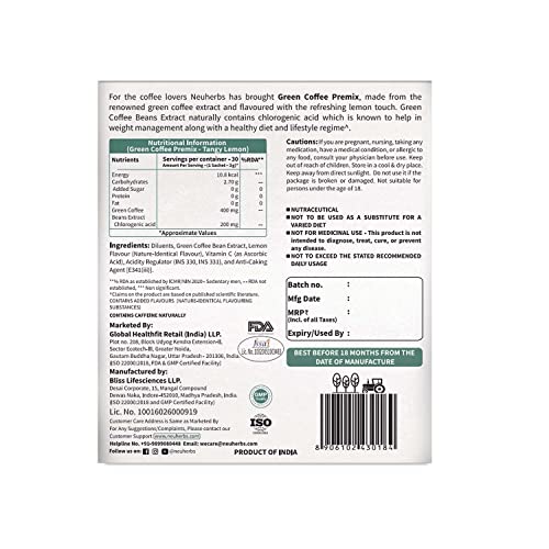 Green Coffee Beans are basically just unroasted green coffee beans grano (seeds) that are loaded with antioxidants and pharmacologically active compounds. One of the most important ones is Chlorogenic Acid. It is believed that green coffee supports Weight management which is a long-standing goal of achieving a healthy life which includes healthy eating and physical activity to maintain a balance between intake and energy consumption. Why to choose Neuherbs green coffee beans? Neuherbs Green Coffee Beans are natural and fresh Arabica coffee grains that are unroasted to provide you all the benefits of chlorogenic acid that can help in weight loss regulating your sugar levels improving your heart health. Neuherbs is always there to provide you with the finest product so are the green coffee beans that are without any additives and flavoring agents. To help you reach your fitness goals easily we provide you with free diet consultation by our expert team.