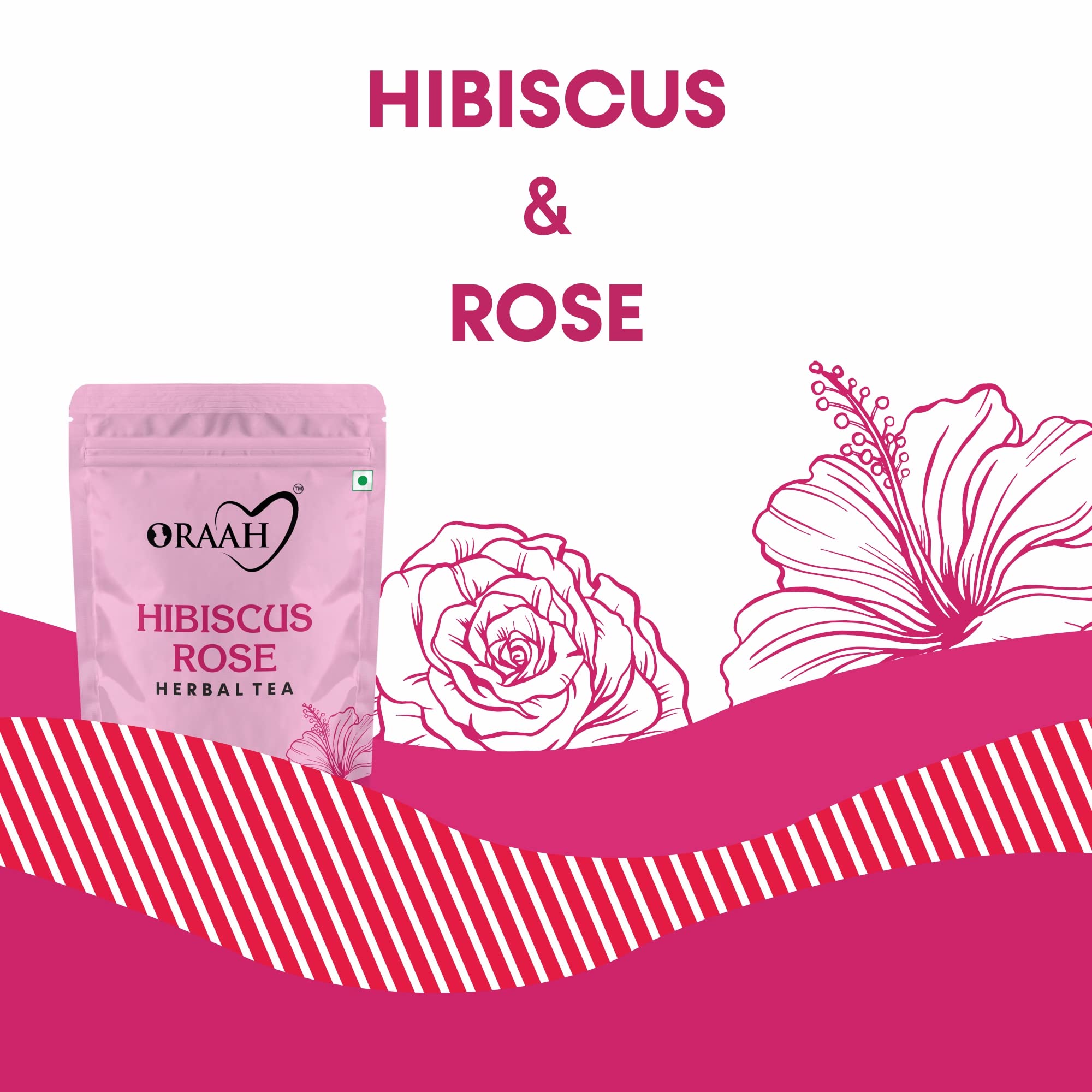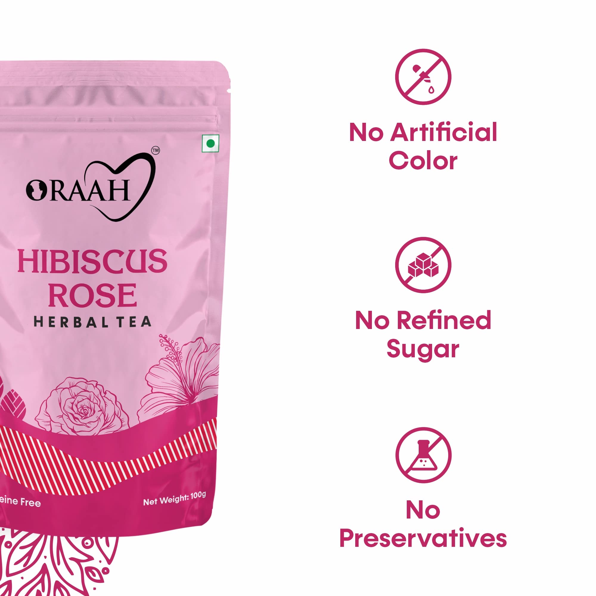 Oraah Hibiscus Rose Herbal Tea- 100gms | 100% Natural Ingredients | Calming Hibiscus & Fragrant Rose | Nourishing Hydrating Alleviates Stress Promotes Better Sleep