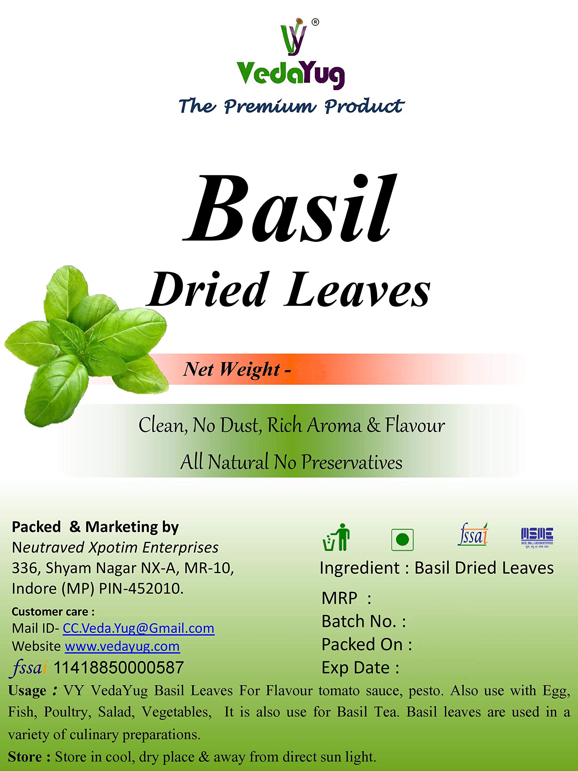VY VedaYug Basil Leaves Dried/Sweet Basil Leaf/Herbs/Seasoning/Tea : 70Gram