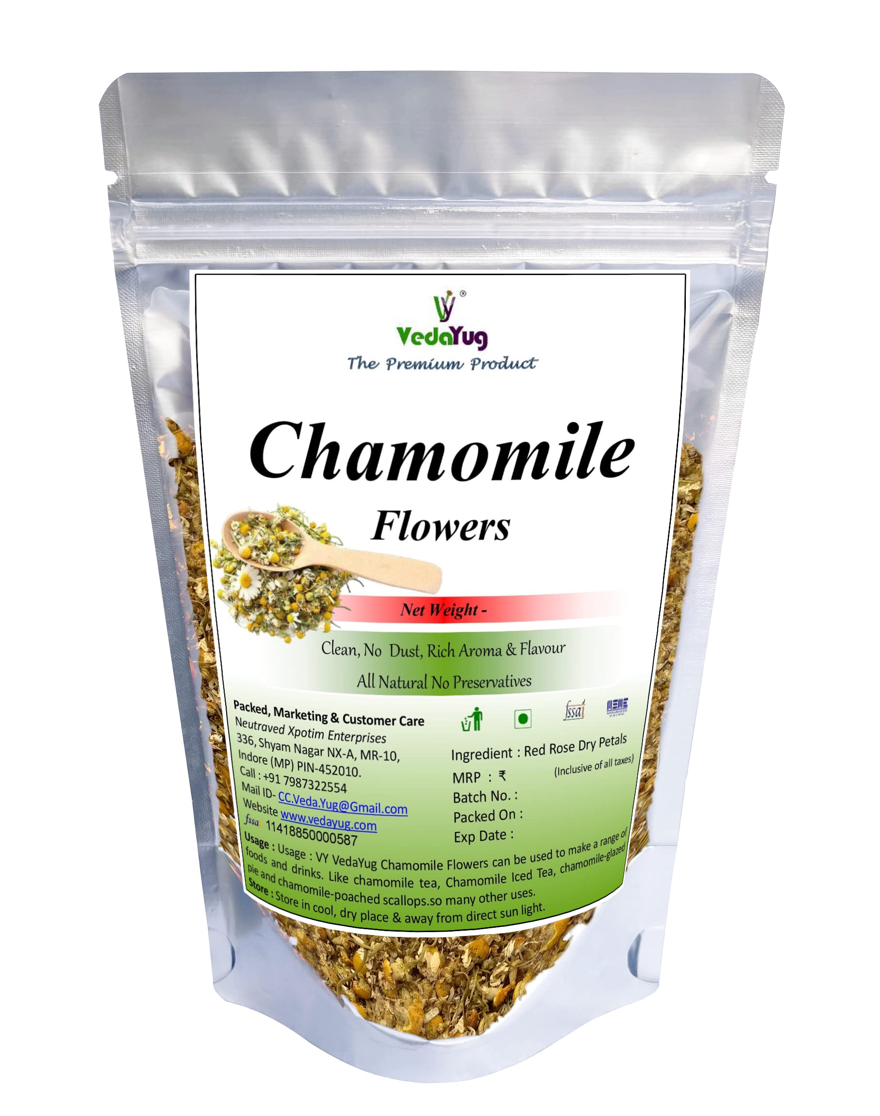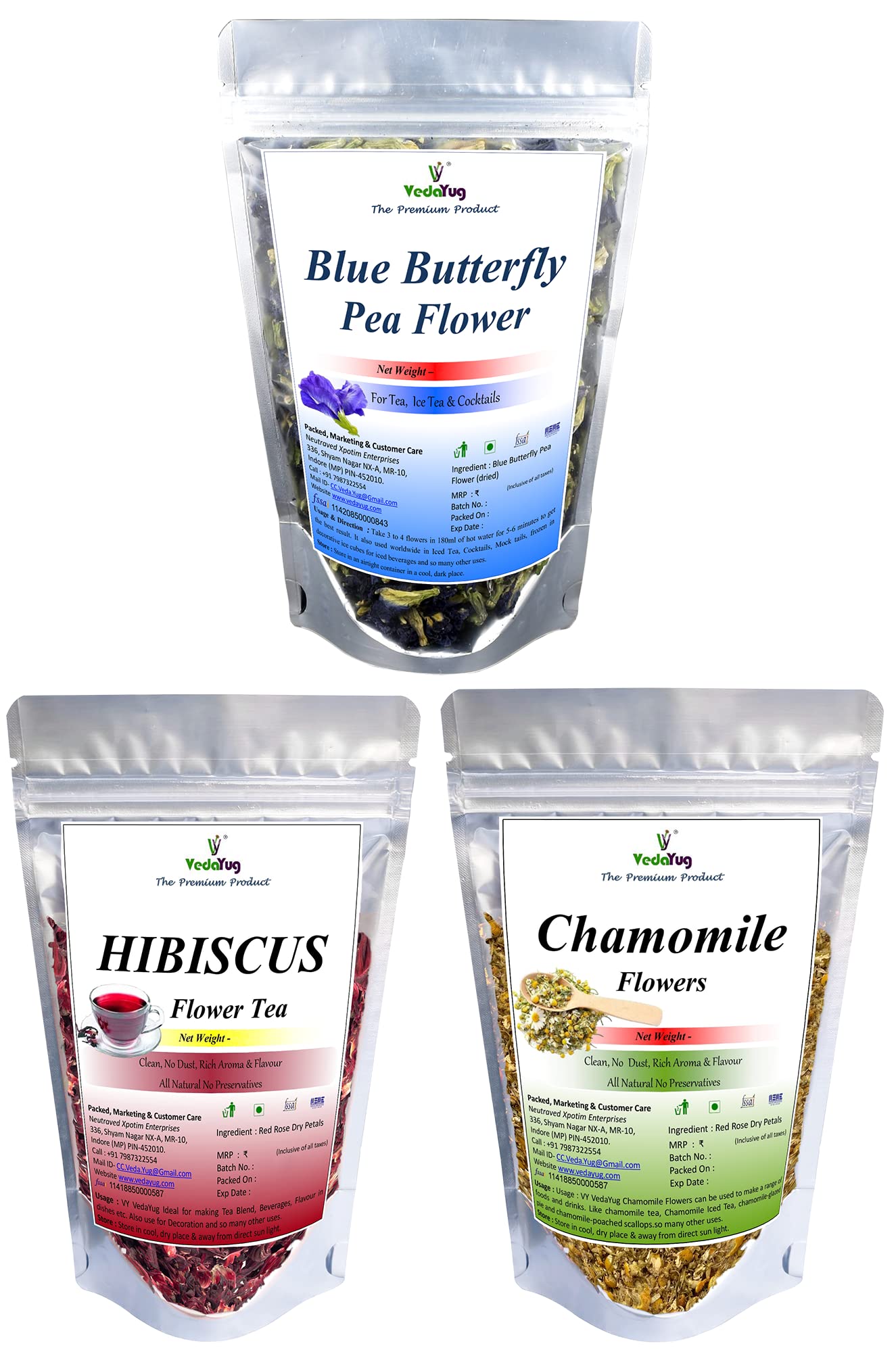 VY Vedayug Butterfly Pea Flower Tea 20g + Hibiscus Flower Tea 30g + Chamomile Tea 30g | Combo Pack of 3 Caffeine Free Herbal Tea (80g)