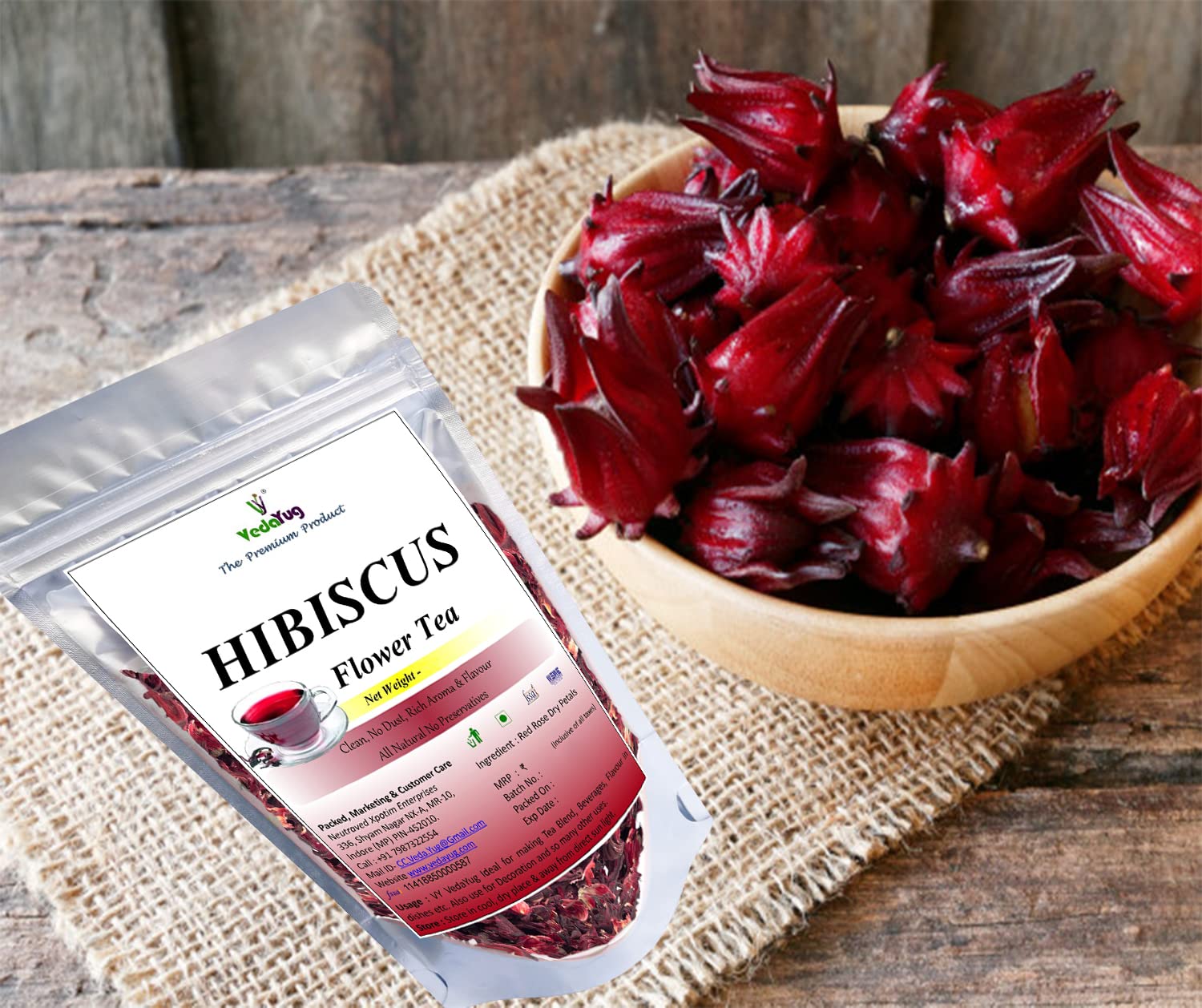 Hibiscus Flower- DIRECTIONS: Put 1 teaspoon (2 gram) of Organic Hibiscus Tea in a cup. Pour boiling water into the cup. Cover the cup and let it steep for three to four minutes. Strain and serve. Preferred without milk.