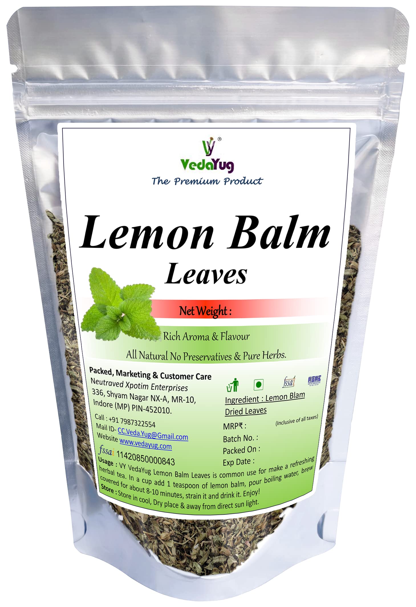 VY VedaYug Lemon Blam Lemon Balm Tea Leaves Lemon Balm Tea 100g