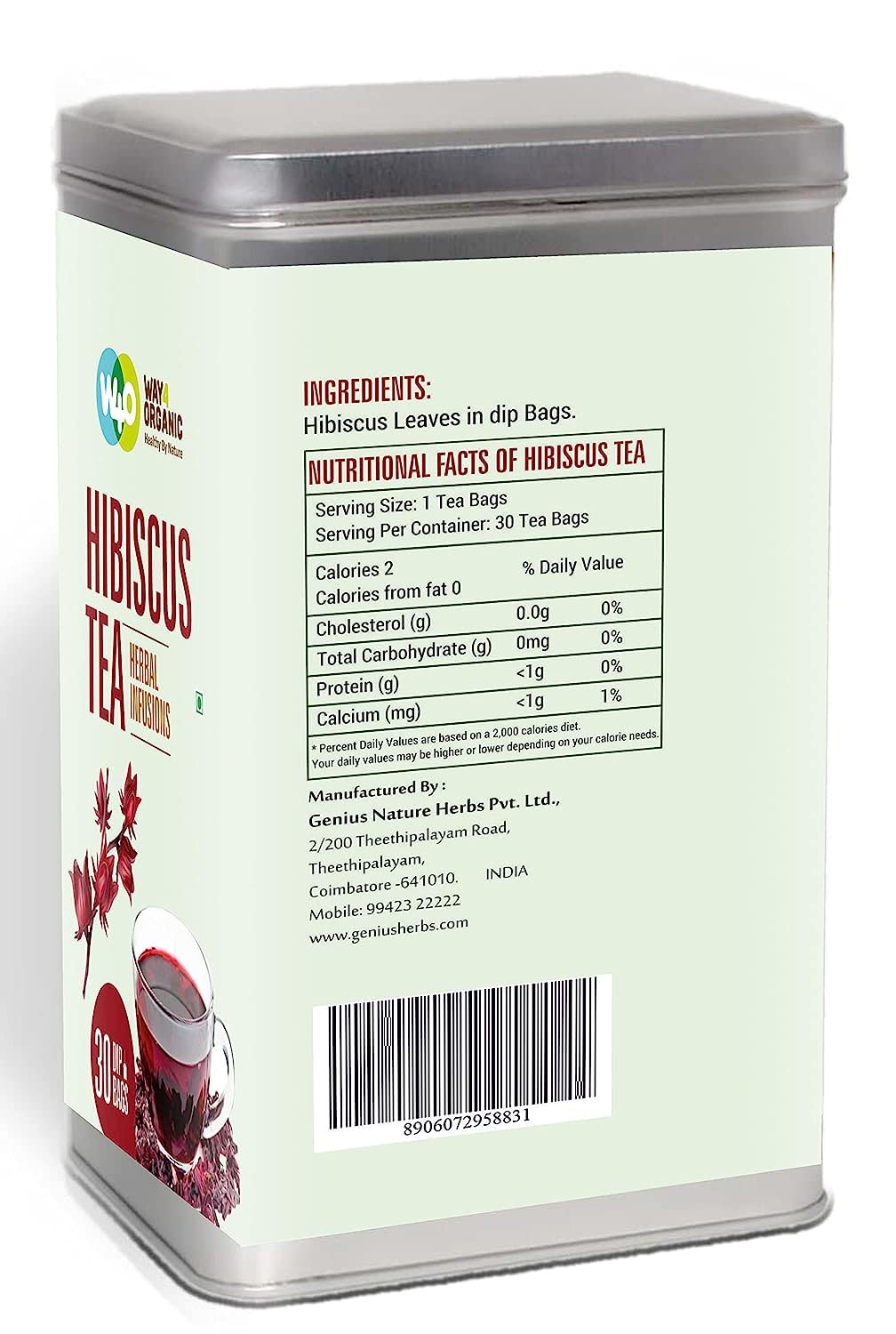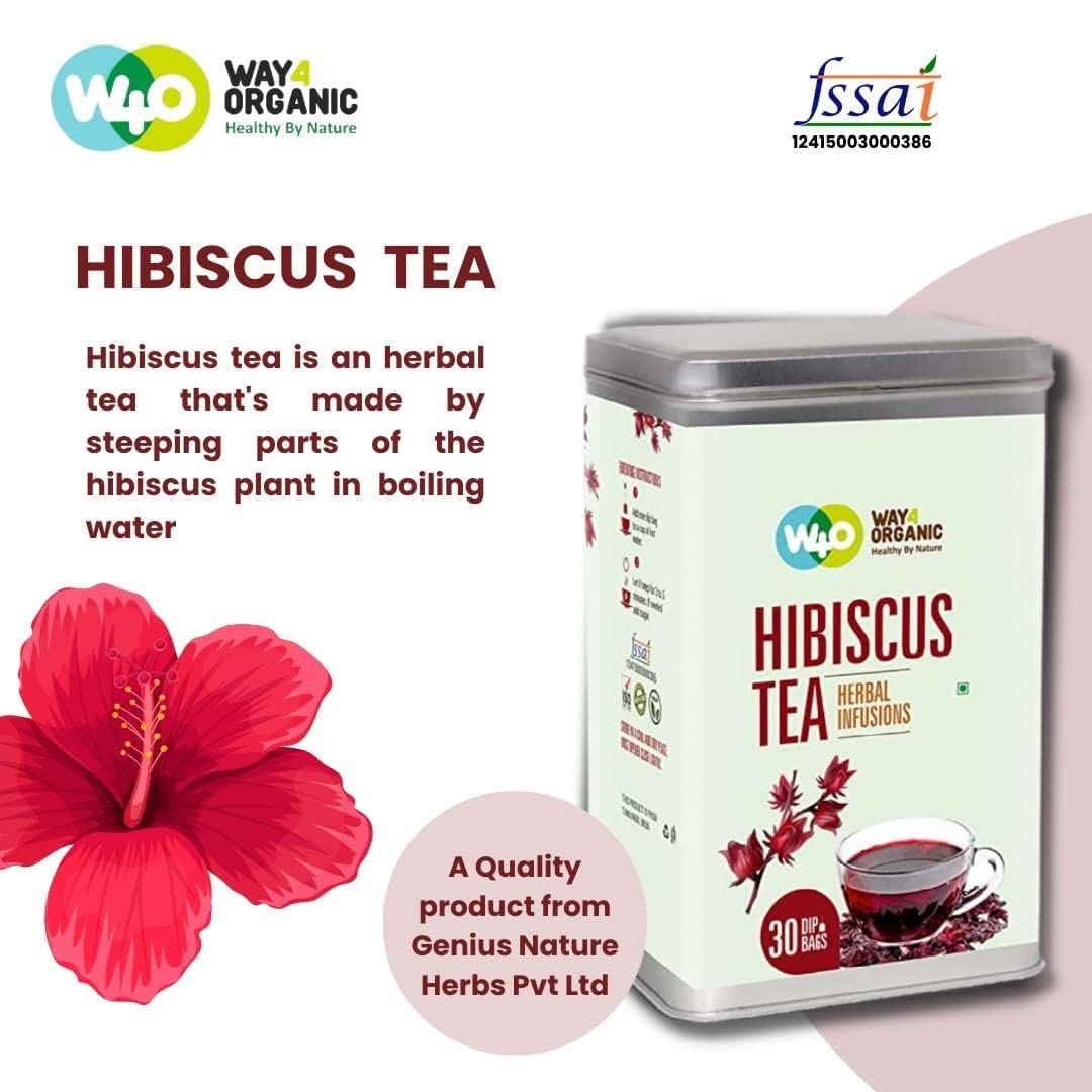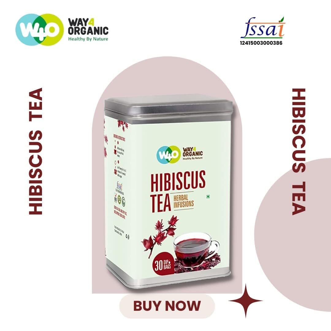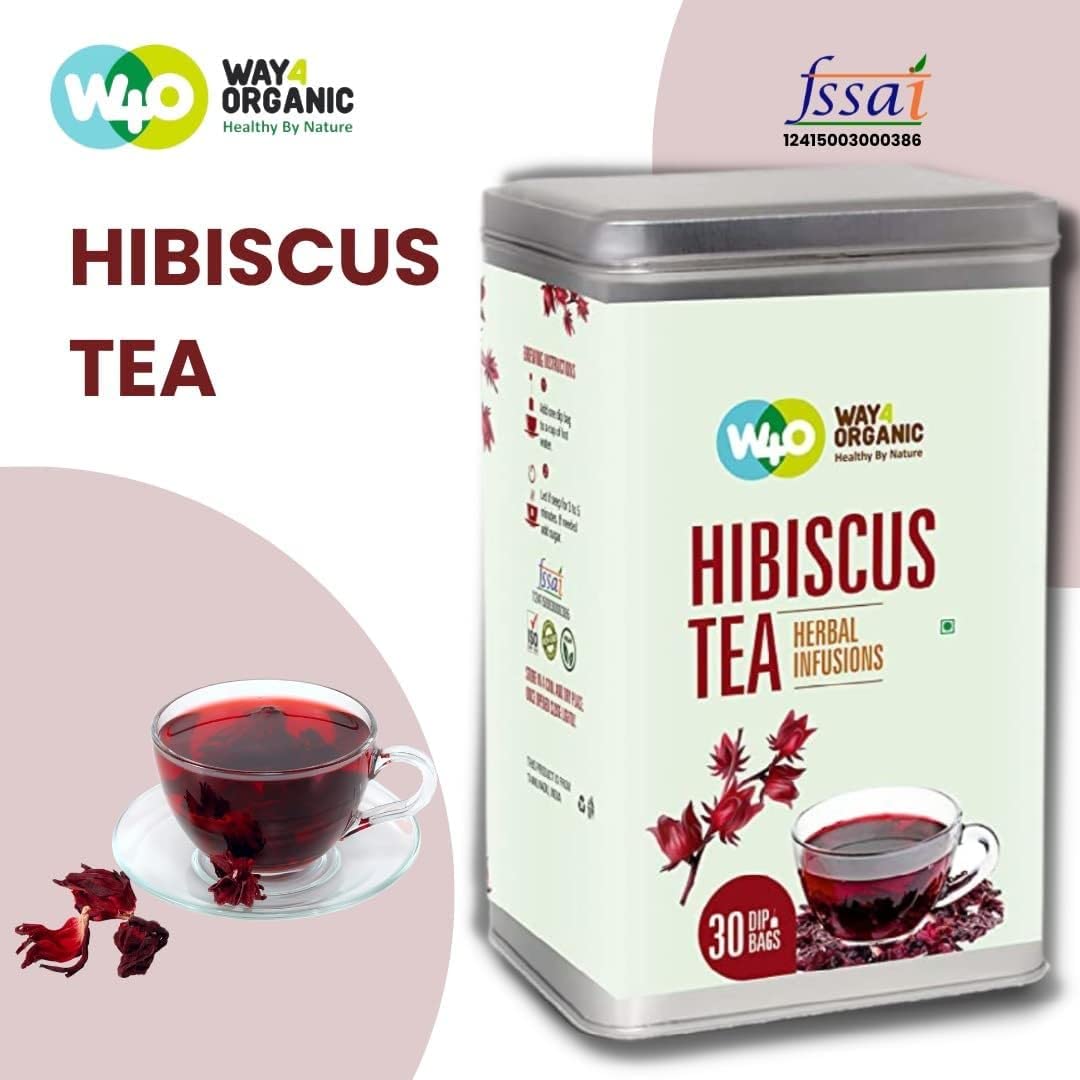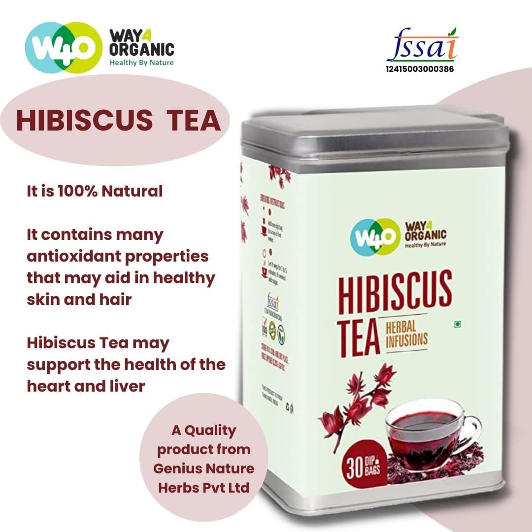 WAY 4 ORGANIC W4O Hibiscus Tea in Dip Bags 30s Canister | Healthy Heart | Pack of 1