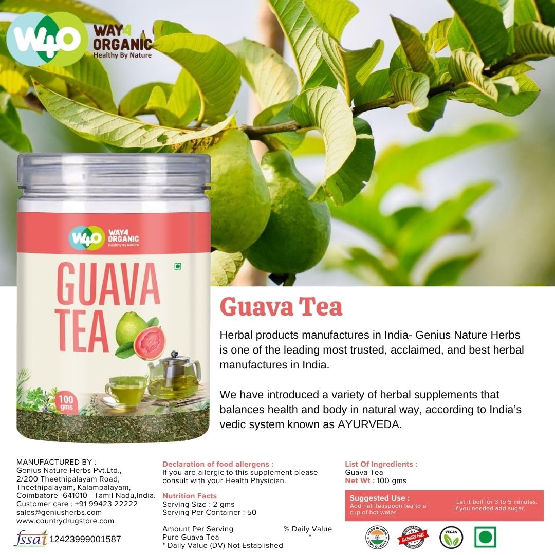 Way4Organic Guava Leaf Tea/Psidium guajava Tea 100 g Canister Pack (Pack of 2)