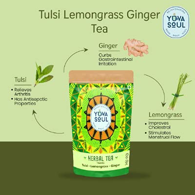 YUVA SOUL Combo Pack Of Tulsi Lemongrass Ginger Herbal Tea(25Grams) and Chamomile Mint Herbal Tea(25Grams)
