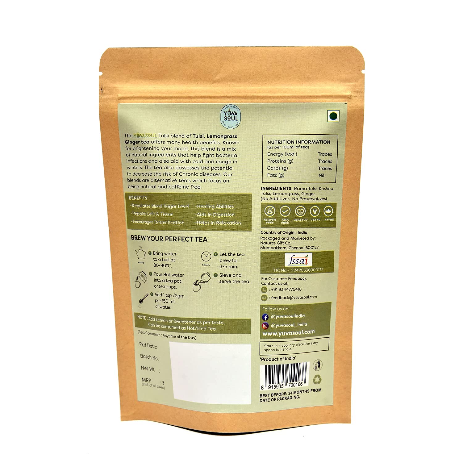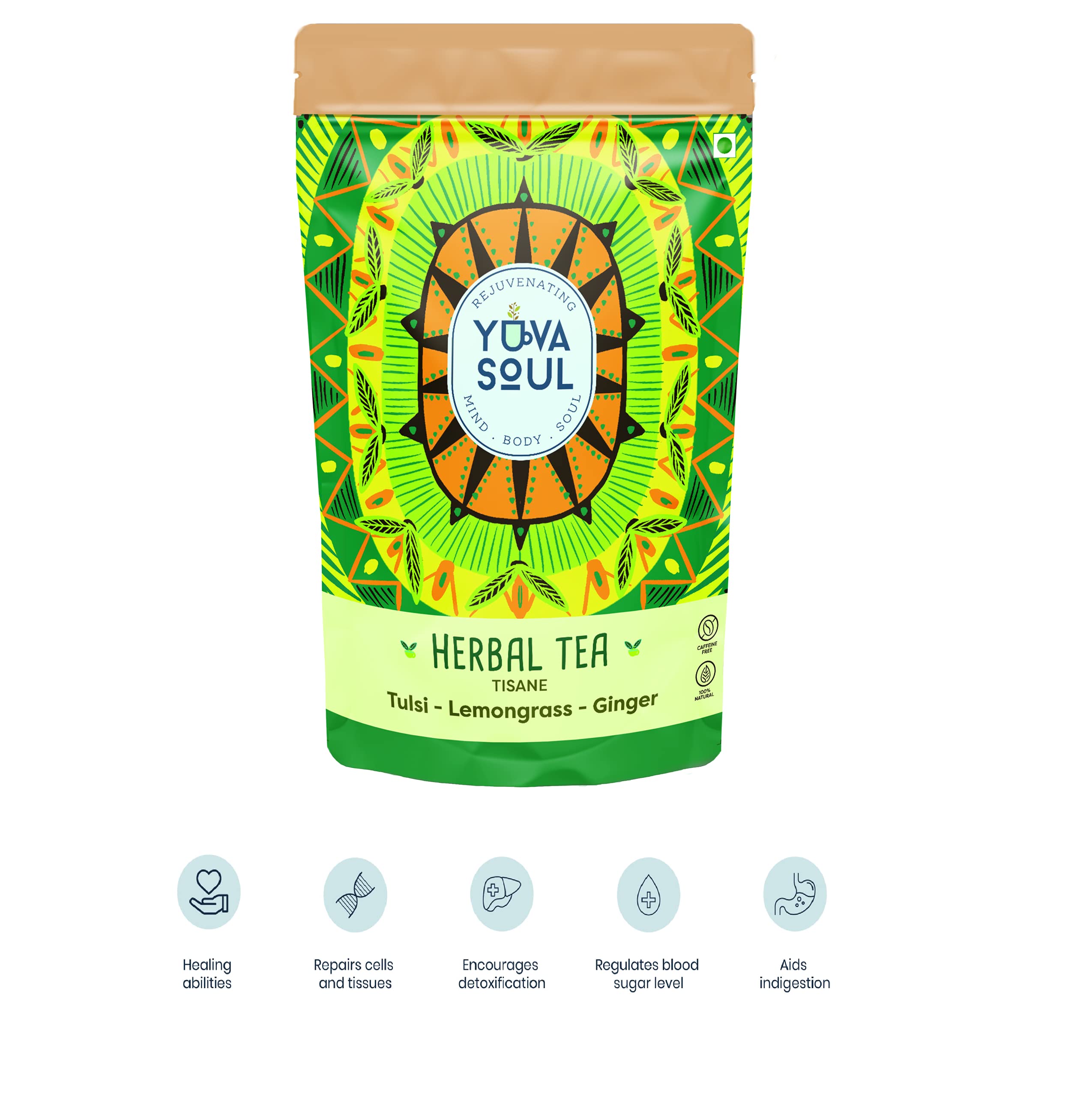 YUVA SOUL Tulsi-Lemongrass-Ginger Herbal Tea - 75 Grams